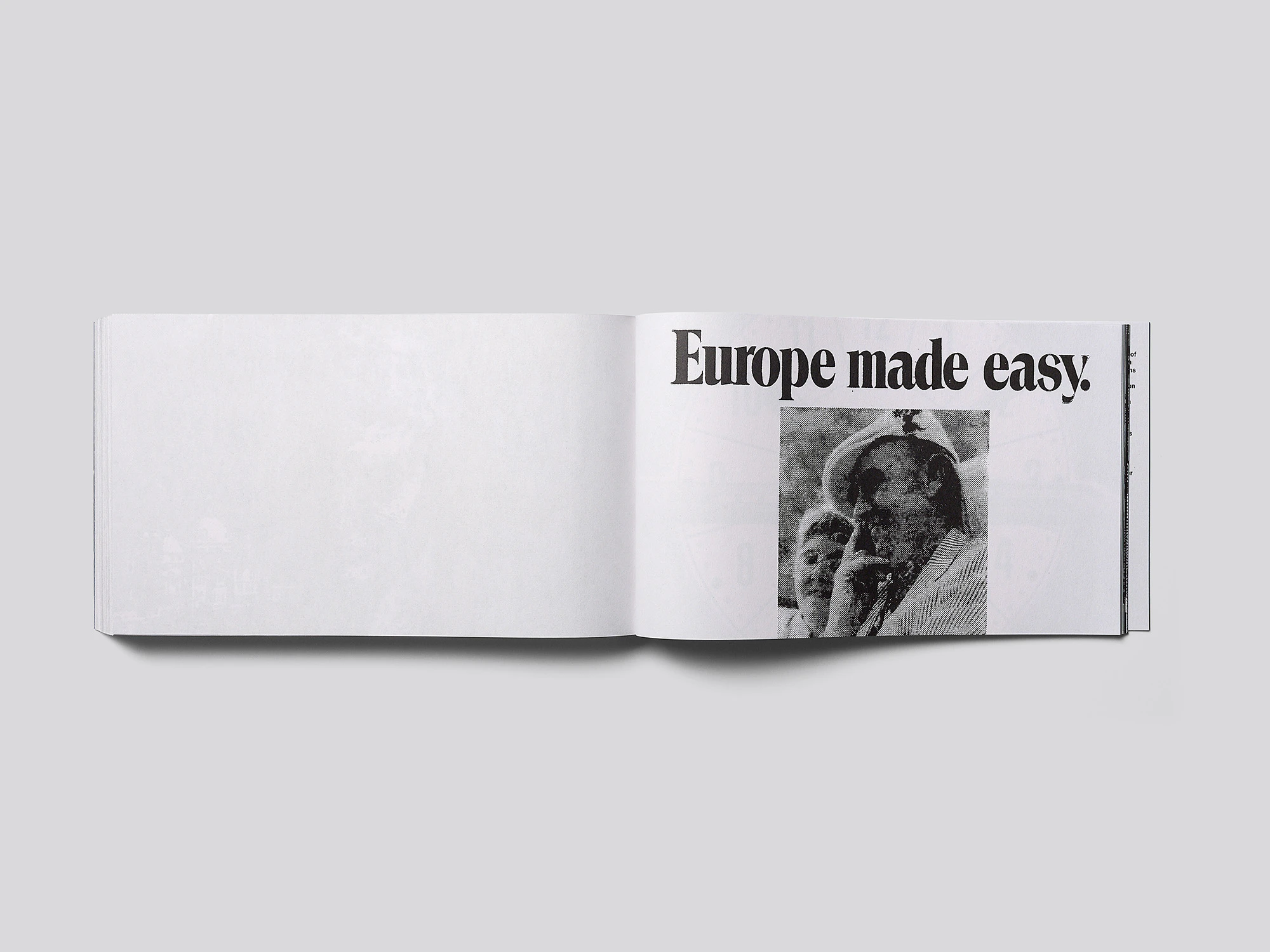 This markedly landscape-format and highly flexible self-publication made of newspaper, containing over 200 black-and-white images cut out from historical travel reportages, has a strong identity and is an astute reflection on the COVID-19 pandemic. The cut-outs come from the New York Times and Le Monde since the 1960s, and each is presented in isolation on the right-hand page, coarsely grained as a result of being enlarged. While a brief, somewhat enigmatic text on the cover and a few conceptual thoughts at the end reference the relationship between tourism and colonialism, a slim insert containing letters written by friends of the participants addresses life under pandemic conditions. The publication thus reveals itself to be a commentary on the far-reaching travel restrictions of 2020, but the randomly combined source material, occasionally cropped in unconventional fashion, does not propose an unambiguous narrative. Instead, it manifests the expectations of readers who immerse themselves in images and imagined paradises precisely because they are unable to travel.
