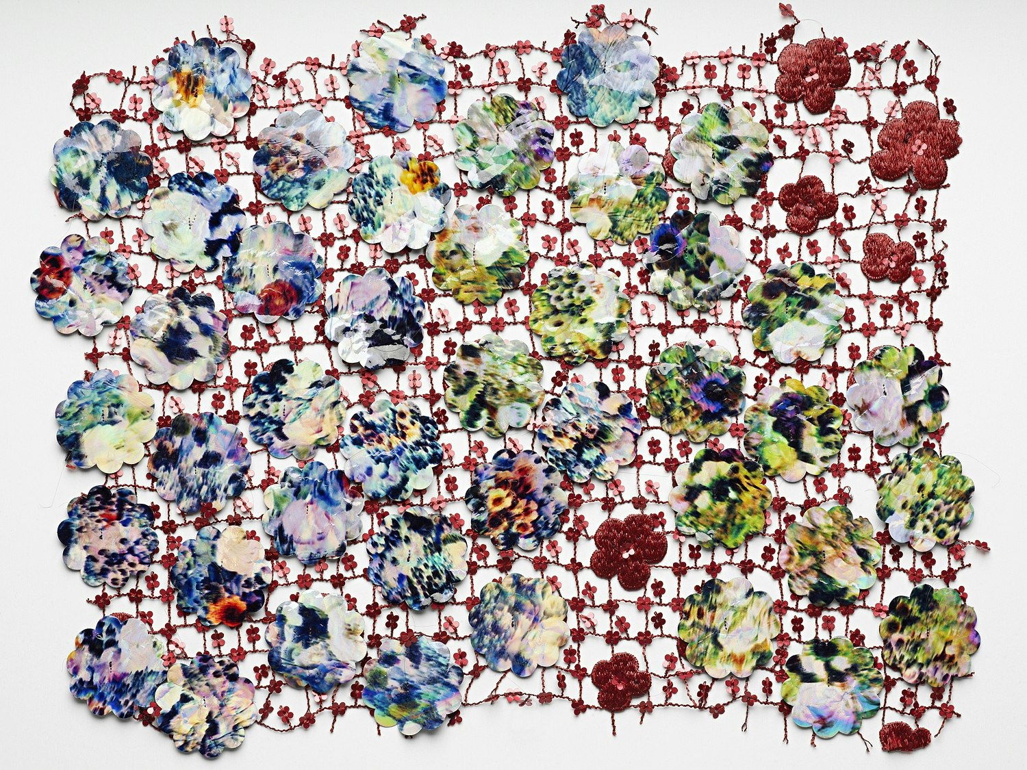 How is it possible to keep creating new patterns without acquiring a signature style and without repeating oneself? To find out, look at the work of textile designer Claudia Caviezel, a native of Zug. She designed a remarkable number of fabrics in the five years she spent working for the haute couture fabric maker Jakob Schlaepfer in St. Gallen. Caviezel has a penchant for luxuriously sensual patterns, which she combines with a bold palette. Her work exudes a delight in experimentation. A design in chiffon, used for Akris creations, shows dabs of pink, orange, blue and yellow that are like swarms of fish afloat against a surprising pattern of swirling earth-coloured sand. From a distance, the ornamental patterns and colour combinations of sequined fabric for a Louis Vuitton collection look like bird's-eye photographs of North African desert cities. The one thing common to all of Cavieziel's designs is their instinctive excellence in working with patterns and colours. In her lavishly luxurious and glamorous designs, she consistently manages to give a vibrant new twist to old and familiar themes. Even the wildcat fur pattern on iridescent polyester for Vivian Westwood is utterly enchanting. Cavieziel's output strikingly demonstrates a mastery of complex techniques and discriminating skill in combining handcrafted work with industrial manufacture. Her creations, motivated by an almost infinite curiosity and experimentation, are a cornucopia of ideas executed with unerring perfection. Claudia Caviezel made her debut with 'Tape it', a spectacular diploma project presented at the Hochschule für Gestaltung und Kunst Luzern (HGK Luzern) in 2002. Just a year later in 2003, she received the Swiss Federal Design Award, winning it a second time in 2007.