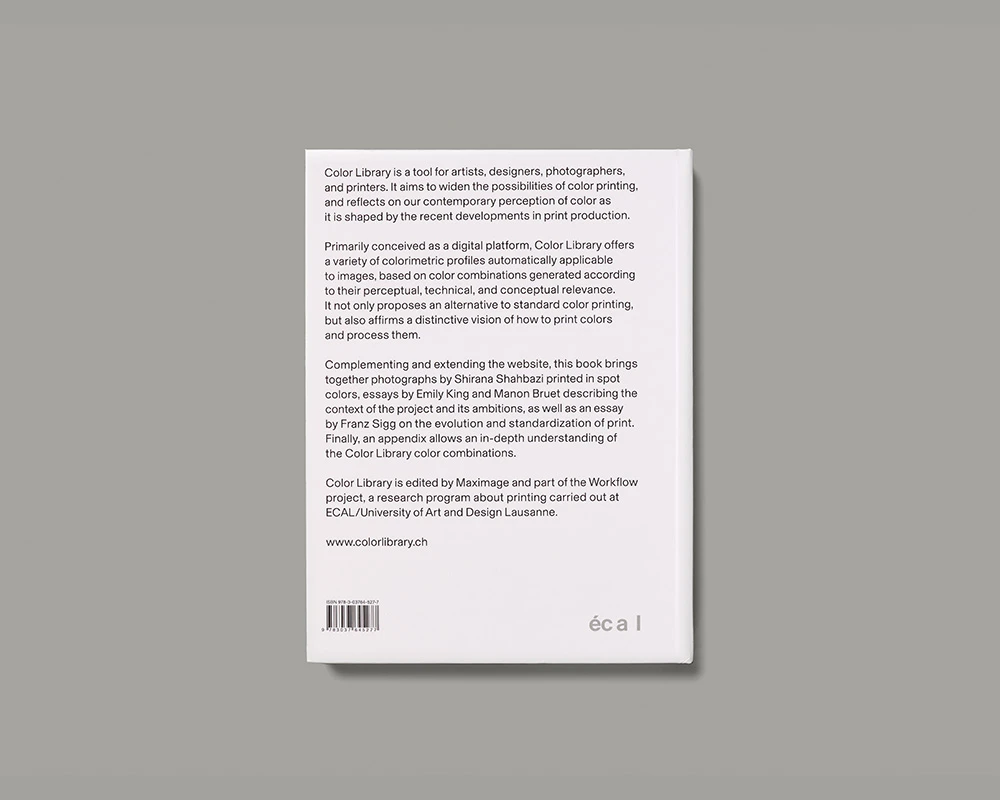 This extensive, medium-format concluding volume on the ECAL/Maximage Color Library is an outstanding example of applied design research and a book for which the school was entirely responsible, even down to the printing. The software for new colour profiles in printing that was developed as part of the project has been used frequently since it was released in 2014. It was also employed in many of the books submitted this year and, in retrospect, may one day come to be seen as a defining characteristic of Swiss book production in the latter half of the 2010s. In this volume, the possibilities opened up by the software are demonstrated via three photographs by the Iranian-Swiss artist Shirana Shahbazi which are printed singly or in pairs over and over again on a right-hand page using a new colour profile each time. A text section is interspersed with historical photographs of printing equipment, always placed to the left. The ensuing technical presentation displays the various scales of each colour profile, always on a right-hand page, with recurring bar and area charts. The sober design is entirely focused on the content, successfully embedding the practical software within a research discourse.
