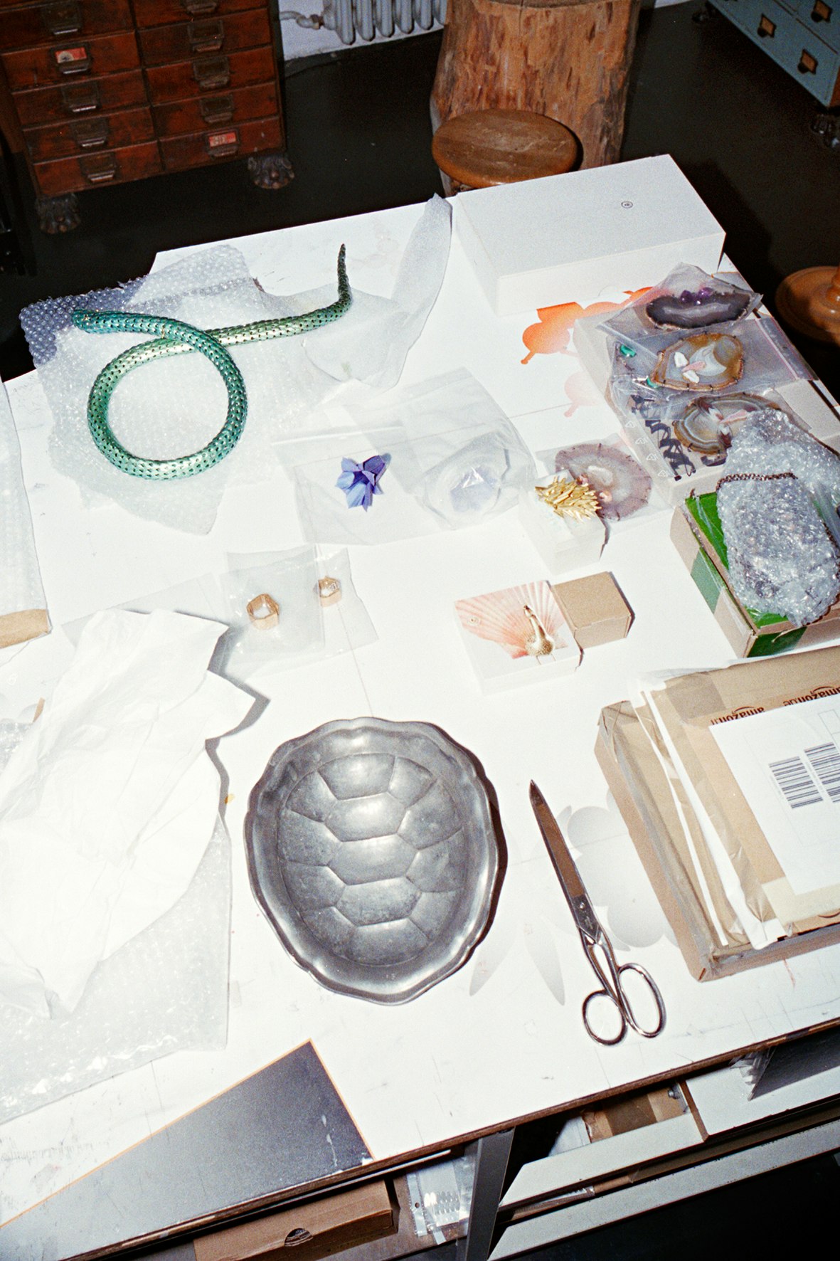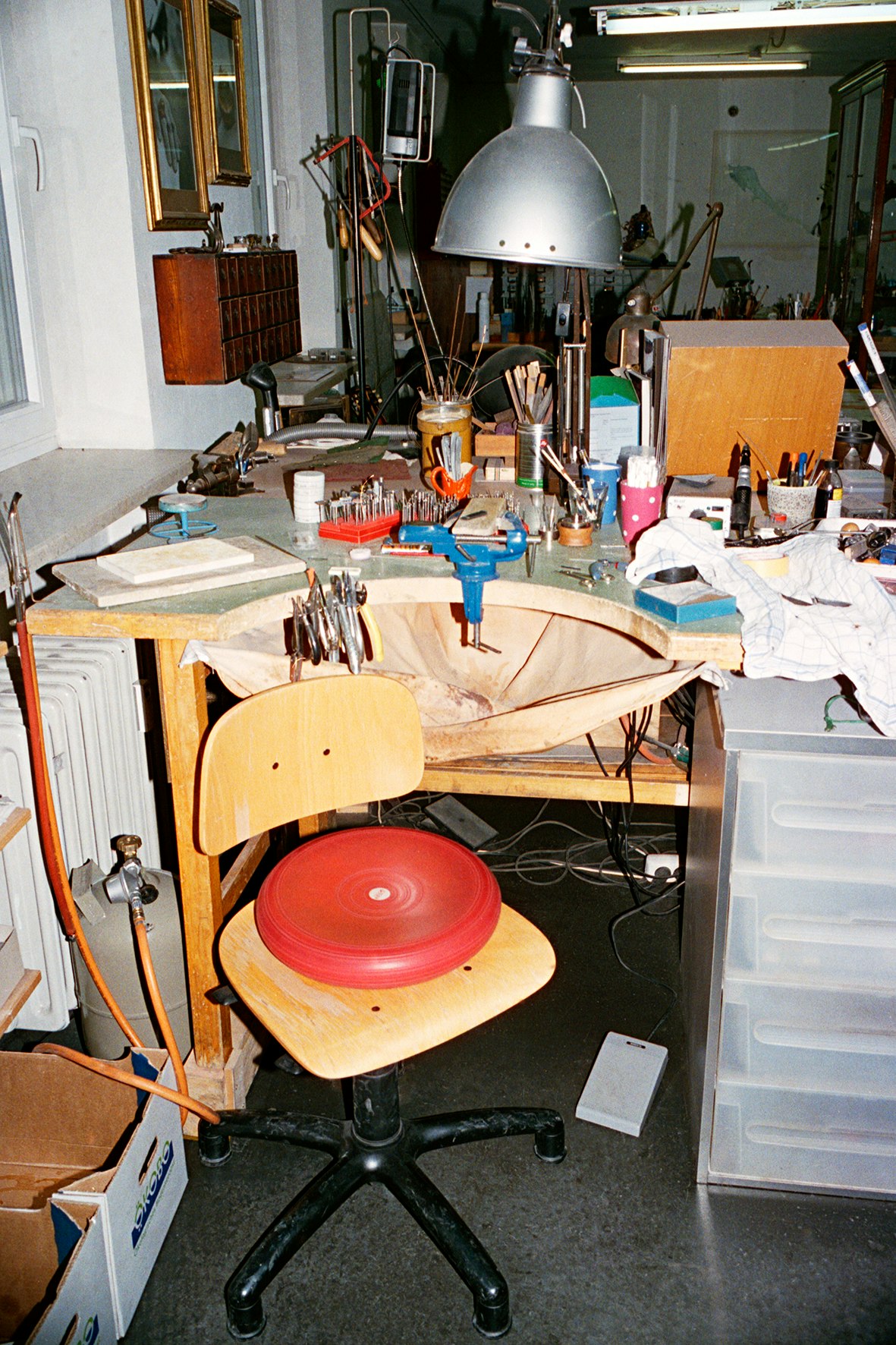 David Bielander is one of those people who realize that the only way to cheat death is to create something for eternity while you're alive. A laborious business but at least whatever it is will end up living without you. Something you stand for, something in which you had to invest body and soul to avoid looking ridiculous. I don't know him personally but I have the feeling Bielander's waters run deep. ( Though maybe he's actually a superficial guy who's never put much thought into anything and just happened to strike gold. If that's the case, please forgive my poor judgement. ) David Bielander is certainly plagued by anxiety, regularly haunted by meaninglessness and doubt, has a hard time existing in the here and now like a zebra, and has dissolved into tears in the shower because everything seemed so stripped of meaning and insignificant. The point is that only someone who has sensed an abundance of ugliness within himself is capable of devoting his life to something as beautiful as making jewellery. Bielander is an artist who sets the painfully normal on a pedestal of exclusivity, compelling us to stop short for a moment in order to take in what we see. A moment in which time stands still and there is no room left for fear. And in the process, he not only risks failure as an artist but also as a functioning cog in society. He jeopardizes his status as a male lion. (For chrissake, you gotta be off your rocker to make bananas out of silver and leather.)