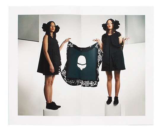 Emilie Meldem was honoured for her graduate collection 'Dumbalicious' (2008) as well as two other collections: 'I feel bling bling' and 'Mes amis les habits' (2005, 2007). Her presentation is outstanding and comprehensive. Clothes, look books and videos complement each other perfectly and create a mood that is hard to resist: a kind of lightheartedness coupled with childlike joy and impudence that, however, is constantly broken or is subjected to her irony. In the video, this attitude is additionally underscored with music. The look books are designed with a lot of care and love of detail. They sometimes contain illustrations that reinforce and accentuate the energy of the clothes.