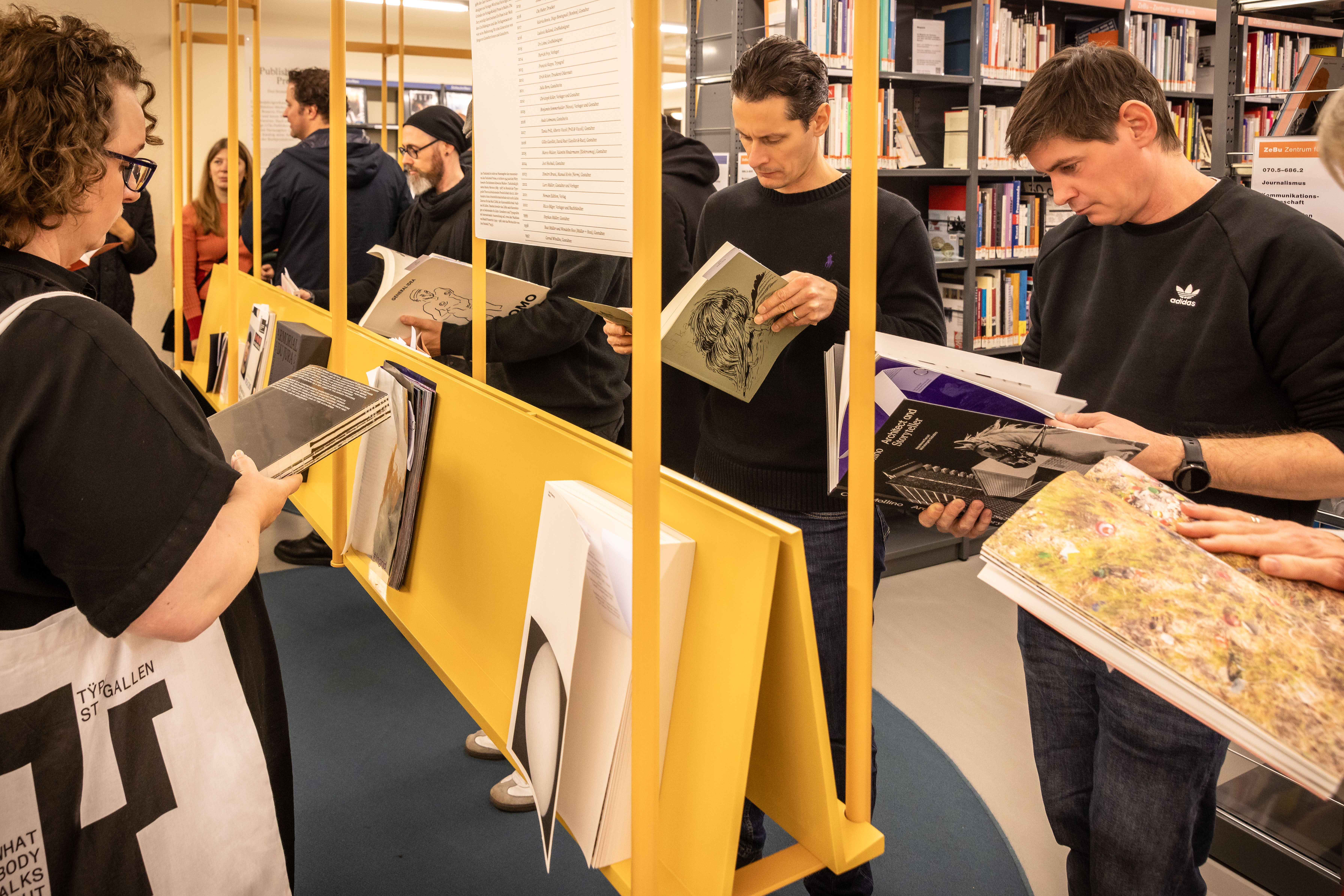 The guests are: Florine Bonaventure (designer); Remo Bitzi & Raphael Schoen (Zweikommasieben Magazin); Winfried Heininger (Kodoji Press); Anne König (Spector Books); Jury members Sereina Rothenberger (Hammer) and Gina Bucher (author and editor); Dan Solbach (designer) & Mirjam Fischer (Mille Pages); Gloria Wismer & Andrea Kempter (Edition Patrick Frey).