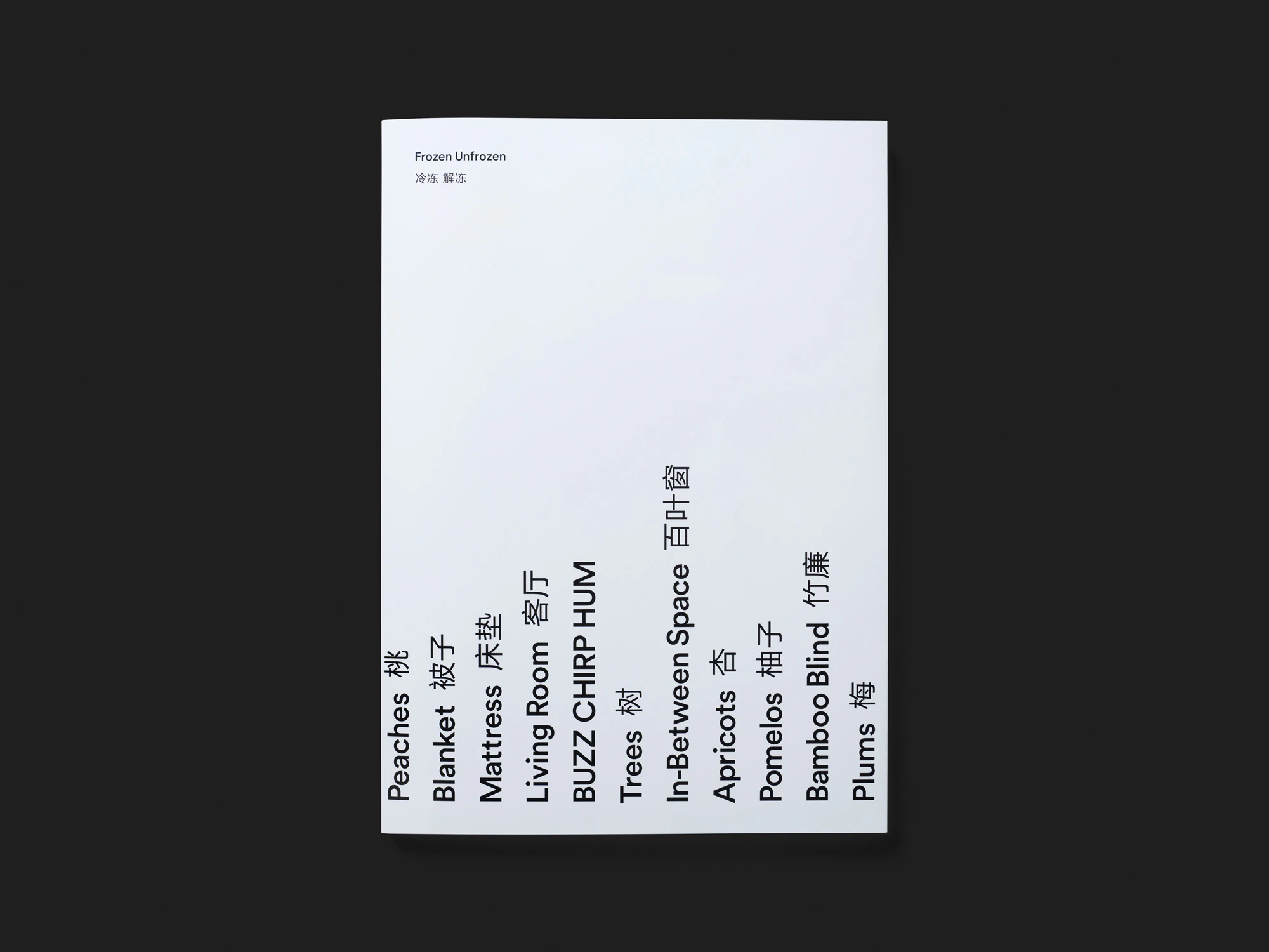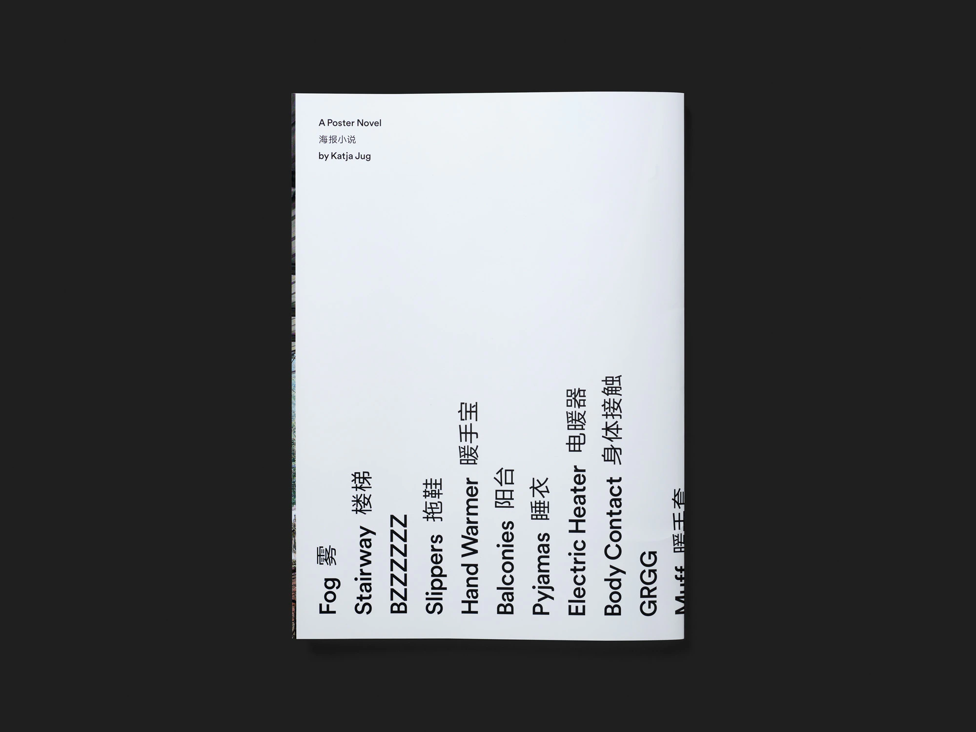 A large-format publication comprising 30 interleaved posters recounts the story of an intimate relationship from a wintry Chinese metropolis almost entirely without text. The two characters, called Frozen and Unfrozen, live in a tower block; and because buildings at these latitudes often have no heating, they have wrapped themselves in heating jackets and wear heat pads on their hands and feet. Most of the posters feature a large colour photo, while a few have rudimentary black-and-white drawings. All of them are folded in three and laid inside each other to create a leporello. When leafing through it, one is constantly confronted by combinations of two posters on the ‘double page’ that can be rearranged at any time. The complicated construction is borderline for a book, but in this case it fits, because the story recounted is not clear or complete either. The folded posters also recall the heating jackets and blankets worn by the lovers, while the sheets’ lack of cohesion is a play on the fragility of their relationship. Everything that is united here for an intimate moment in the narrative and the designed form can fall apart again at any time.