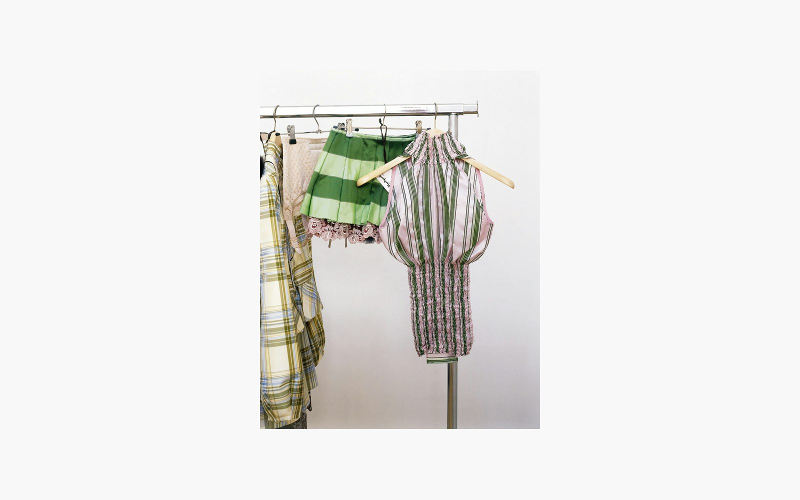 Fashion collection with nine outfits (30 articles and accessories), two pairs of shoes, a lookbook, eight illustrations, a photobook