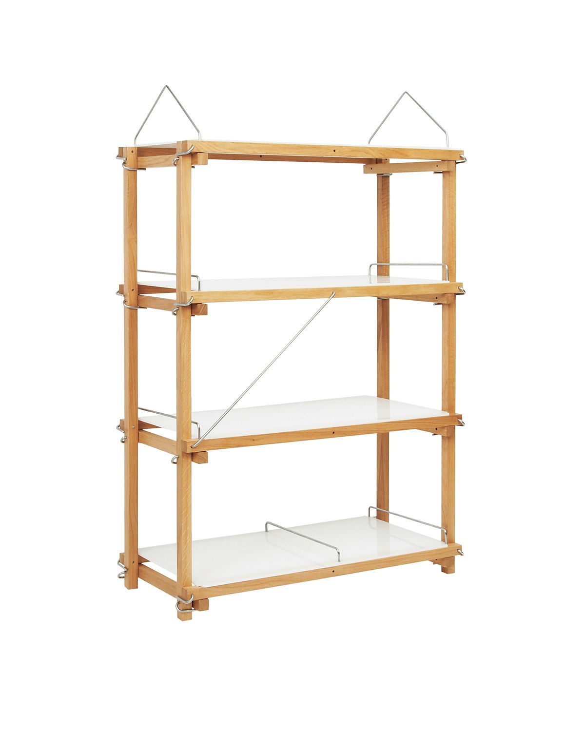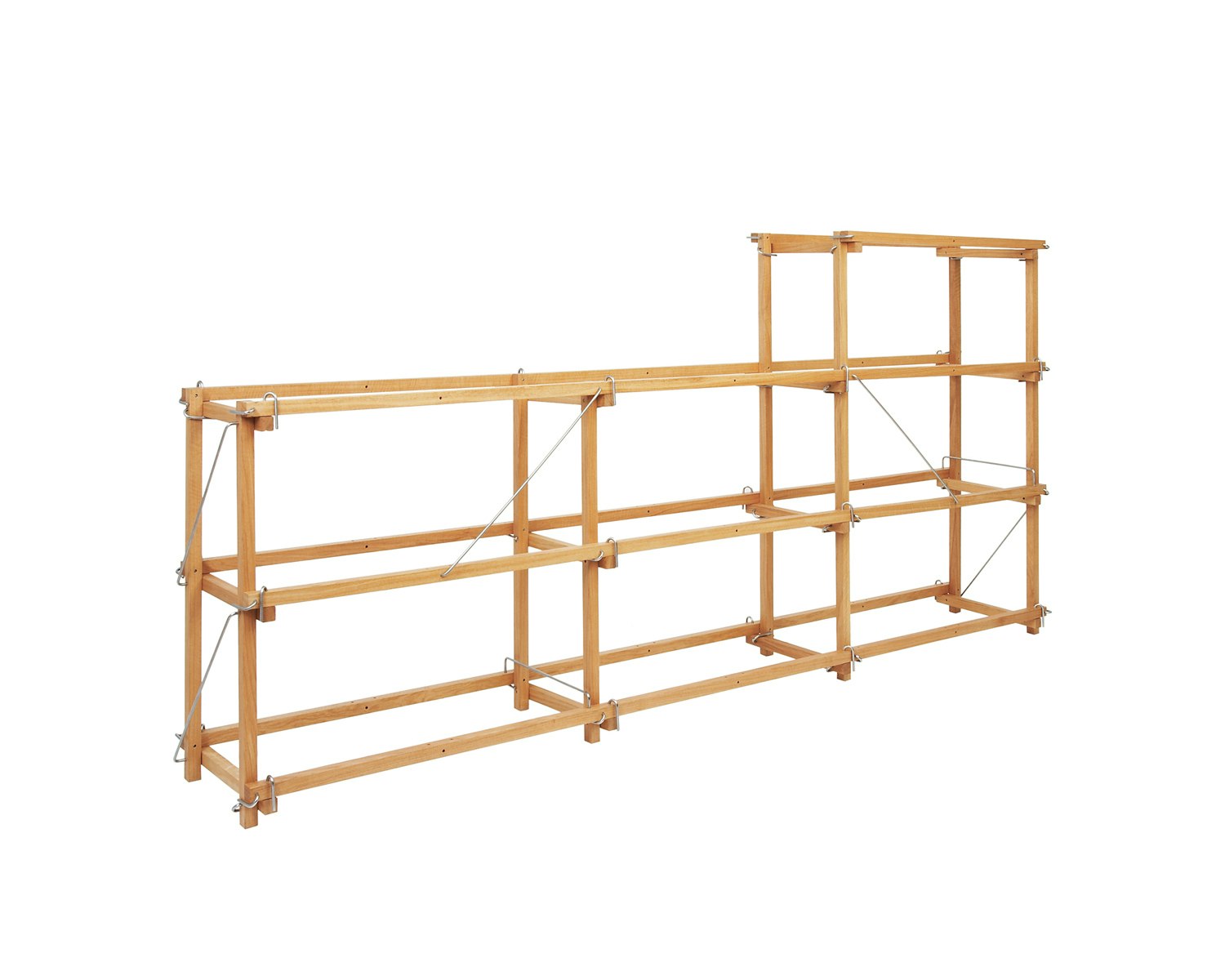 Jean-Philippe Bonzon exhibited his latest creation named 'Modular Racks Staple' at the Swiss Federal Design Competition; it was developed in 2007 as part of the final-year project at the at ECAL. It is a shelf system inspired by scaffolding, requiring no nails, screws or glue. The structure is stabilised by metal clamps, and stability is further enhanced by its combination of oak wood, milky-plexiglas panels and steel hooks. The basic models offer multiple combinations and the shelf system can be put together, taken apart and rebuilt as and when: an ideal objects for office hoppers.