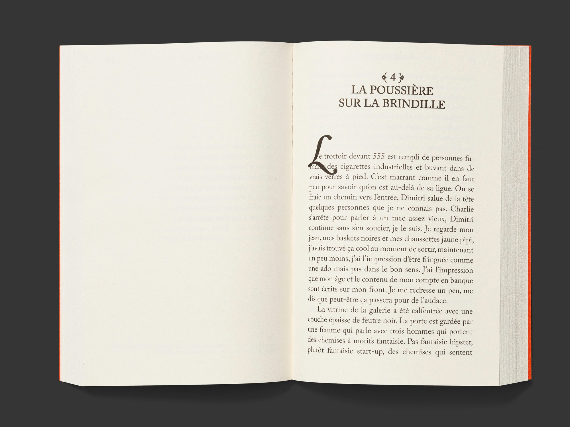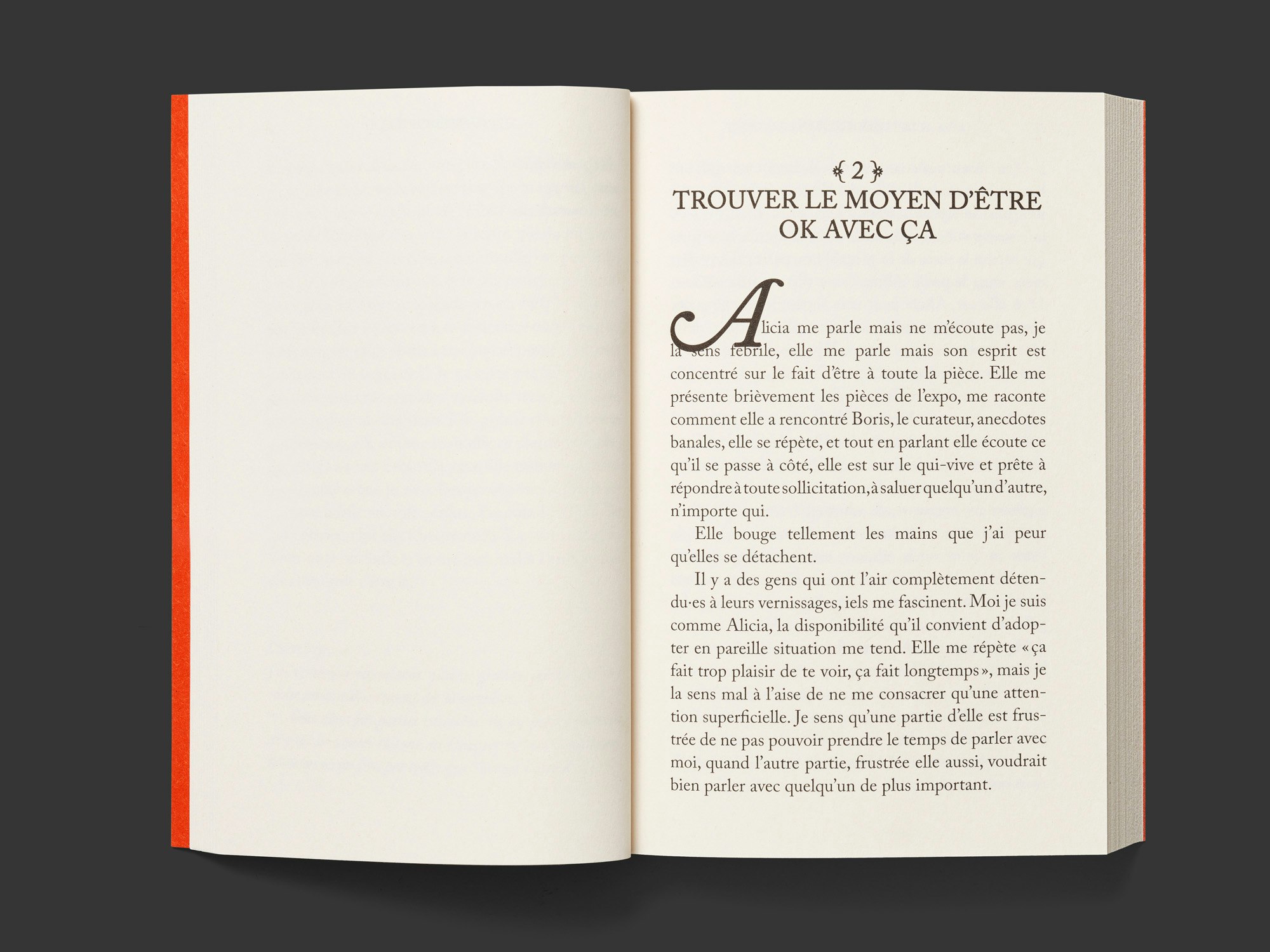 The red cover, serif typeface and occasional ornaments of this wonderfully printed softcover create a slightly nostalgic feel, which chimes very well with the content. The text discusses the work of certain women in the Fluxus movement, such as Nye Ffarrabas, who cut their careers short in the late 1960s. It is divided into eight chapters, each with a very similar design, made up of different text extracts including passages personally addressed to Ffarrabas in the form of letters, extensive quotations, art-historical notes and fictional explorations that draw comparisons to the contemporary art scene. The non-linear narrative approach is subtly and wittily conveyed via a slightly smaller loose page, which pretends to correct a printing error and thereby provides additional variety to the story. The design has a warm and affectionate impact. It is a very human artist’s book that also functions well as an object.