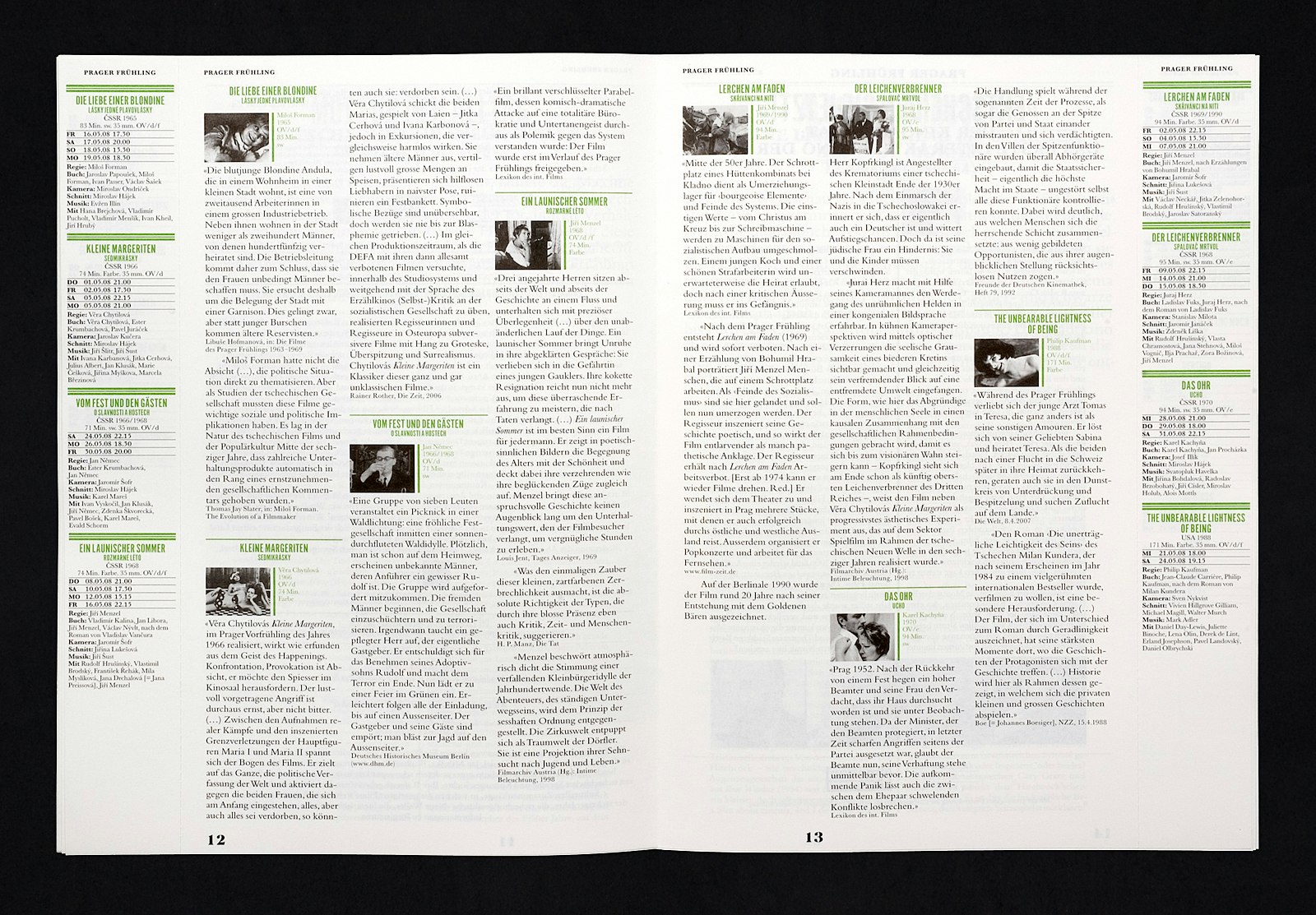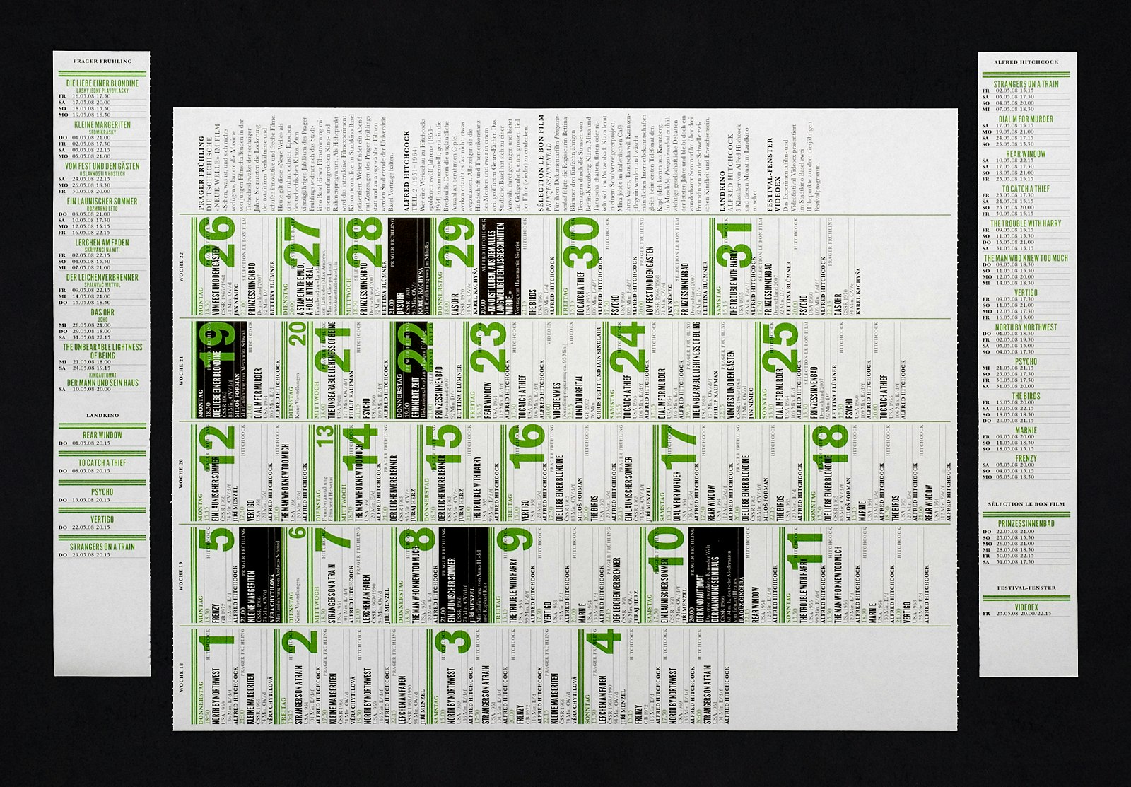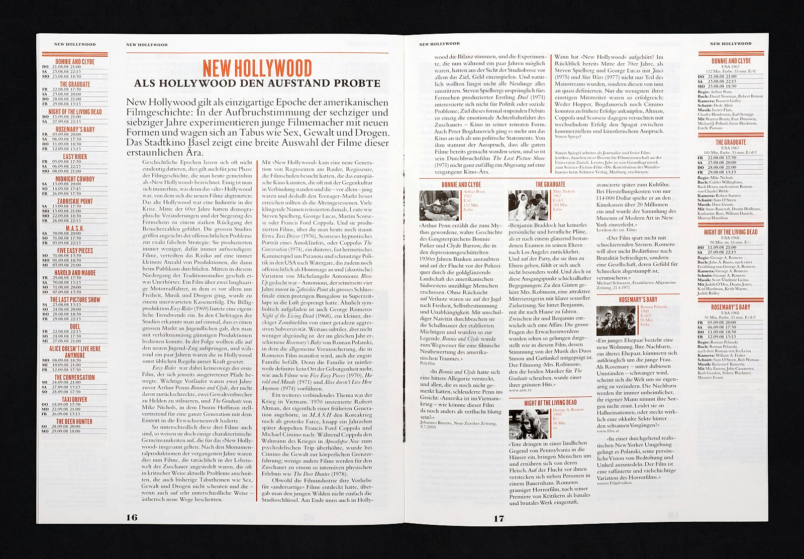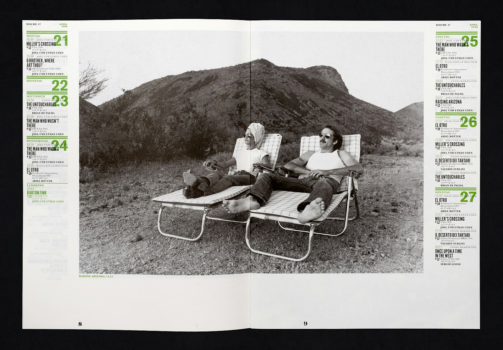 Elements such as black-and-white film stills and headlines from newspapers of the 1950s are, together with a conspicuous layout of the typography, combined into an aesthetic unity, thereby inviting viewers to immerse themselves in the world of film. The programme guide follows the same style. A special feature of the guide is its practical tear-off calendar which fits into any handbag. By combining two tried and tested media, ensuring high-quality work, and presenting his own independent aesthetic, Ludovic Balland promotes the whole spectrum of film classics ranging from François Truffaut to Lucchino Visconti and Jim Jarmusch.