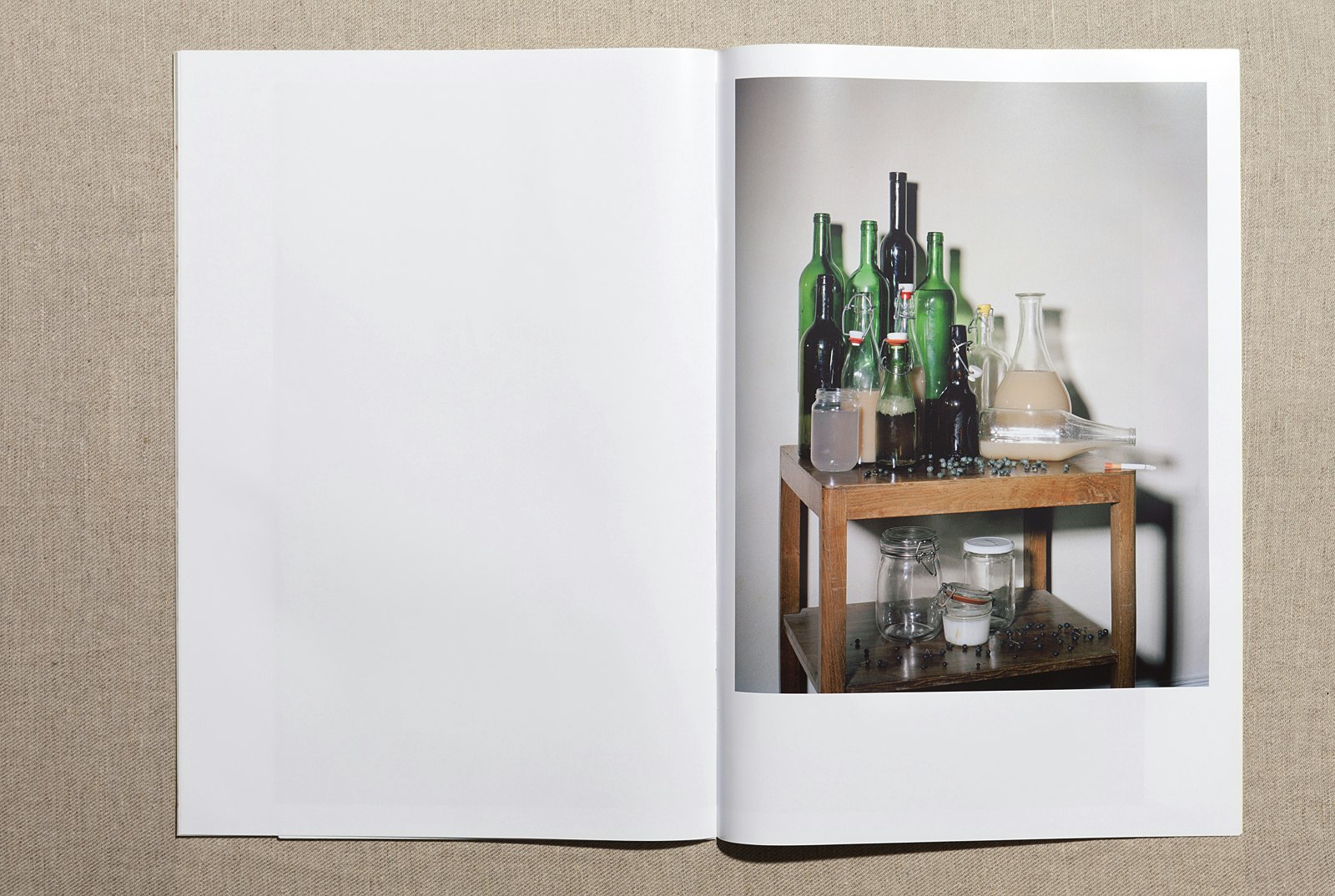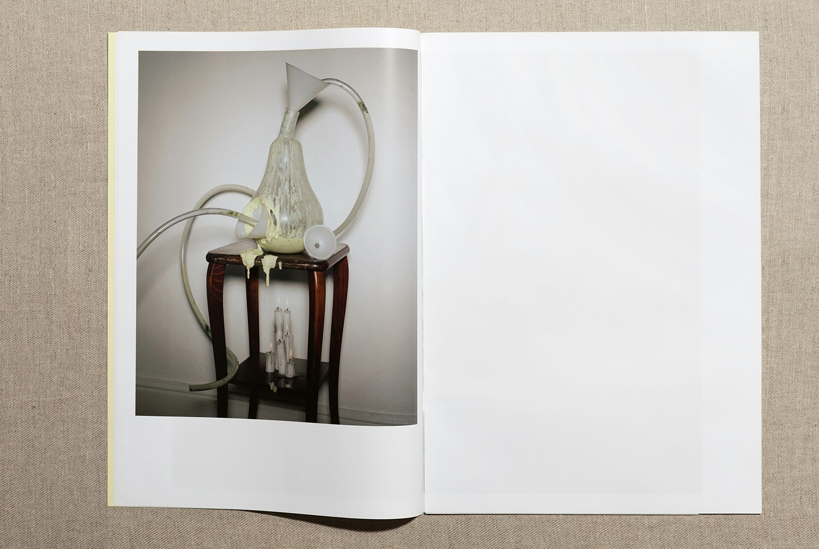 What do contemporary still lifes look like? The two Lausanne-based photographers Matthieu Lavanchy and Jonas Marguet reinterpret this long-standing issue. They have been asked to create a photo cycle based on associations from the stage play 'Obèse' (Obese). However, they thought that obesity was a sensitive issue; they certainly did not want to poke fun at the obese. For this reason, they decided to tackle the subject in the form of still lifes. The two designers envisaged a fictitious person whom they portray by arranging foodstuffs and other household items. The photographer duo, who completed their studies at the ECAL in Lausanne in 2008, has now realised nine idiosyncratically composed pictures. The first photo from 'Neuf veltes remplissent un quartaut' shows a table with a white tablecloth, two large loaves of bread, and a gourd vase with a rose. Thick smoked sausages hang into the picture suspended from a string, and onions, garlic and a burning candle can be seen. A classic still life then? Only at the first glance. For certain strange elements interfere: an oversized barbecue fork is stuck in one of the bread loaves, and a whitish, foamy substance reminiscent of fat is coming out of the other one. Other pictures show food even in unexpected places: crayfish, mussels and caviar on a dressing table, for example, which creates a very disconcerting effect. Finally, an image with hoses and funnels and a pumpkin-shaped glass jar from which a yellowish liquid is dripping. The association with the digestive process immediately suggests itself. The approach of Lavanchy and Marguet is a variation on the still life of old Dutch masters: whereas the old painters mainly showed fine foods in abundance, the heaped piles or liquids can no longer be unambiguously identified as food. Matthieu Lavanchy and Jonas Marguet cleverly present the unsavoury and confuse us with alienation effects.