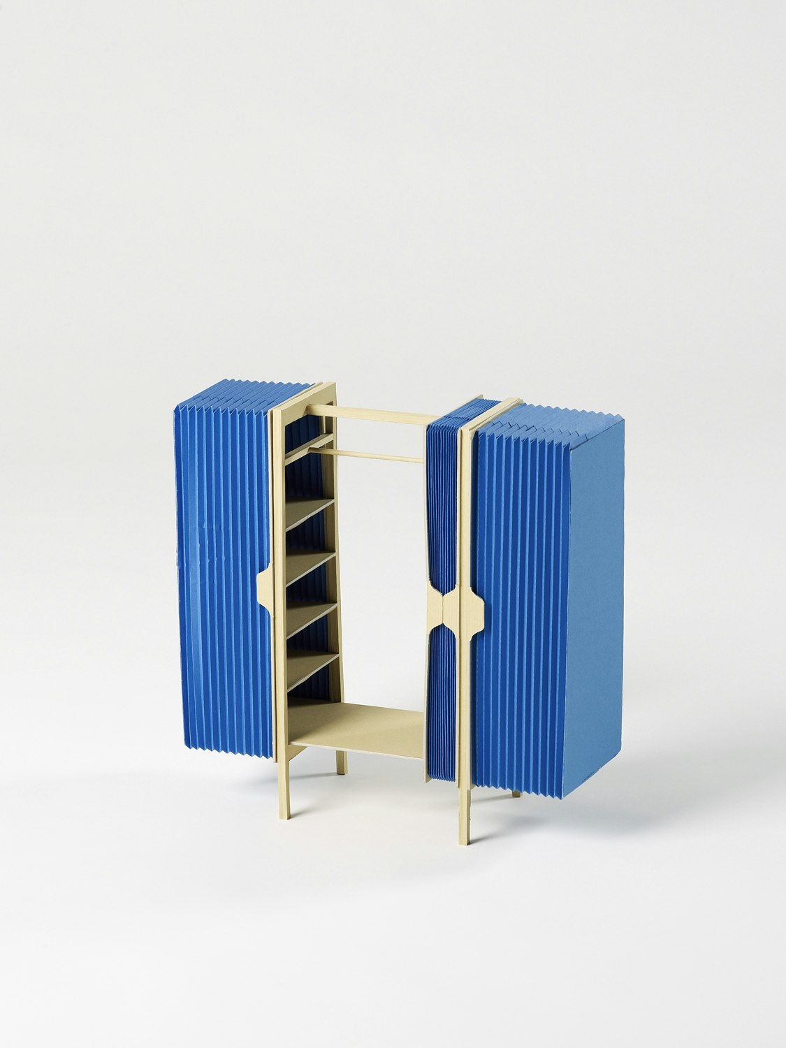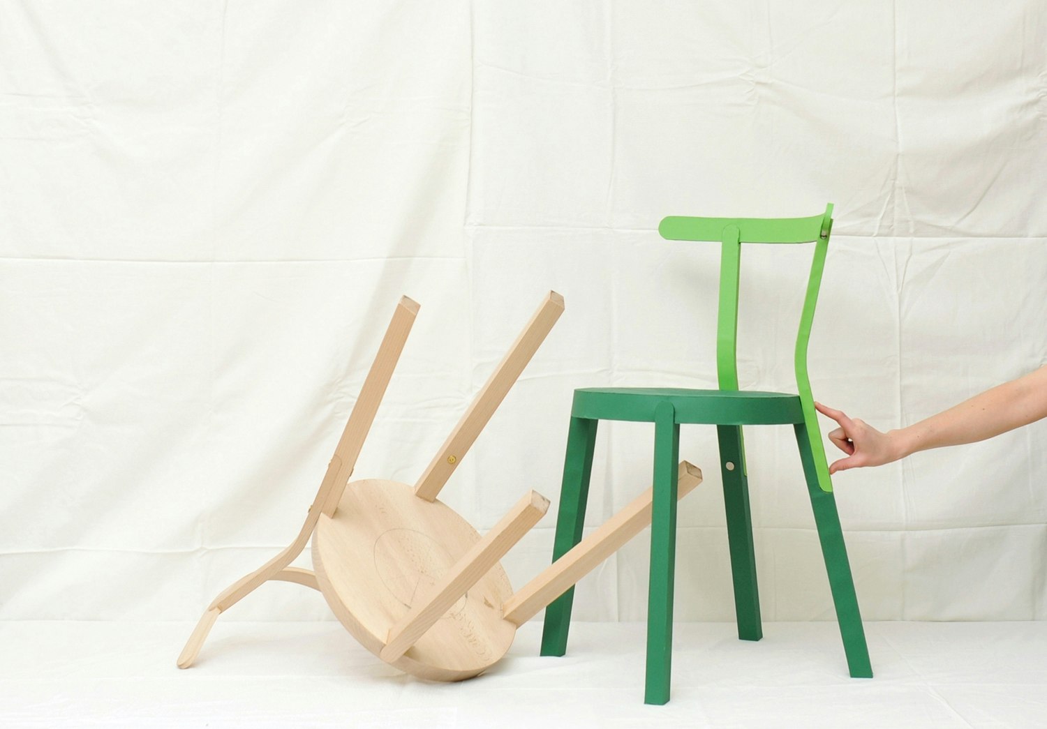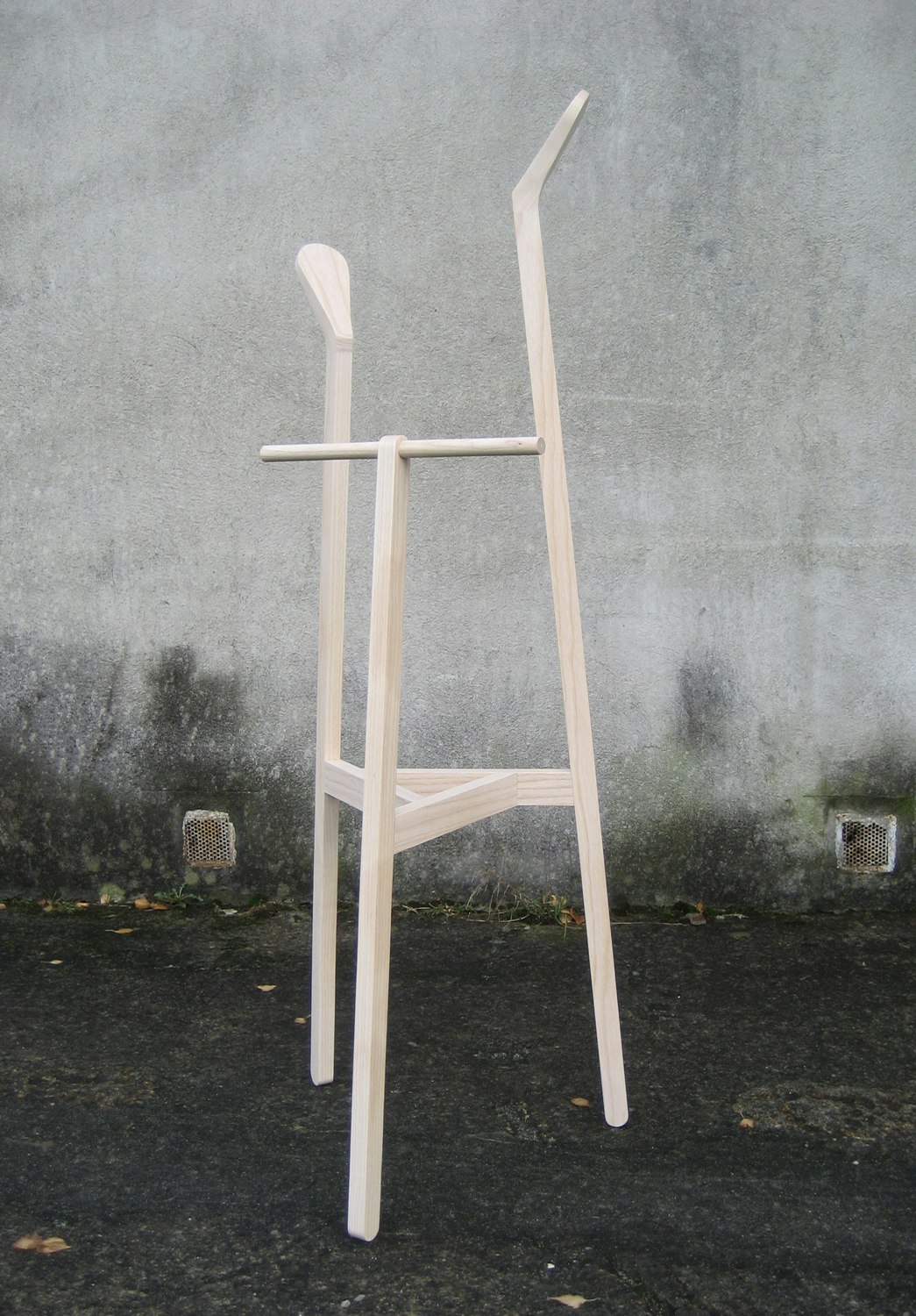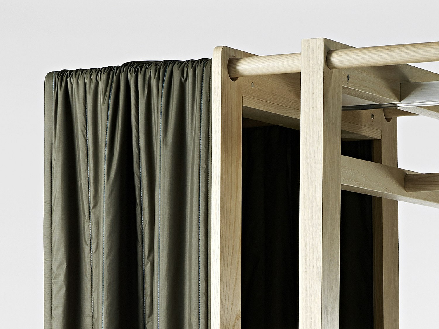 How do you help people put away and store their clothing? Designer Moritz Schmid conducted a kind of field research before he started designing objects. Trained at the Hochschule für Gestaltung und Kunst in Basel (FHNW), this industrial designer found compelling replies in two objects: a wardrobe and a clothes valet. The wardrobe, 'Aris', is sculptural in appearance and fulfils a second function as a room divider. Schmid took inspiration from geometrically cut hedges, objects that he translated into his own idiosyncratic design. 'Aris' has no front and no back and is accessible from both sides. It is more like an abstract sculpture than a wardrobe; being slightly tapered towards the top makes it look even more elegant, lighter and floating. With a loadbearing structure of ash wood and aluminium joints, the wardrobe's distinctive feature is its textile shell made of balloon silk and wadding. The vertical quilting seams, set off in a different colour, are not only an attractive feature but also functional, since they fold when the wall of the wardrobe is pushed aside. In 2010, 'Aris' will be launched as a serial product by a major Swiss furniture maker. Schmid has designed 'Ligerz', a clothes valet, for the same collection. Special, organically shaped ears top off the structure, made of simple squared timbers. The character of the object is derived from the milled shape of the ash wood. The designer's concept for a series of chairs is similarly creative and surprising. The lower section of 'Eriz', made of solid wood, consists of a stool, out of which the back of the chair 'sprouts', as Schmid puts it. The back is screwed to the rear legs and available in a range of colours so that the bottom and top of the chair can be of different colours. This is an apt example of Moritz Schmid's idiosyncratic and innovative design.