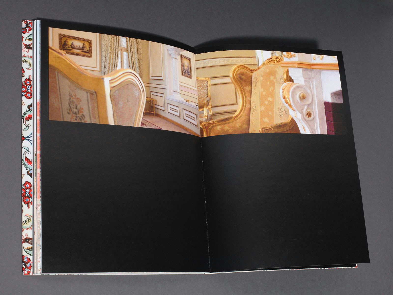 In the photograph series 'Al Fassad / La Corruption', Noha Mokhtar looks at the interiors and exteriors of Egyptian society - its ornaments and façades - observing how Egypt presents itself to the outside world. The photographer juxtaposes film sets, new palace building sites and ruins in Cairo. However, this is not purely a documentary project: she mixes views of architecture with artistic pictorial compositions assembled from fabrics and patterns, with almost sculptural Kleenex boxes and plastic stucco. Both works give us a glimpse of an aspect of the Middle East usually hidden from us, and reveal that Noha Mokhtar knows how to assemble an intelligent puzzle.