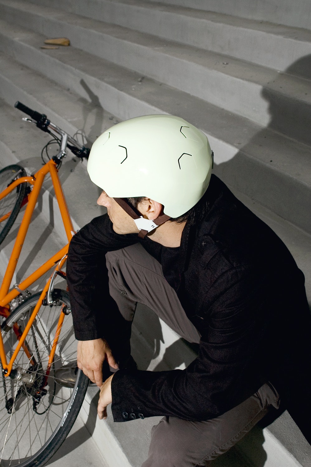 The unusual and extremely contemporary shape and colouring of the Urban Bike Helmet are eye-catching. The light green outer shell is organically formed, streamlined and has several symmetrically aligned cut-outs. The striking design elements lend this protective headgear an innovative look. Philipp Gilgen took his inspiration from contemporary graphics and fashion design. It was important to him to create an object whose form would allow the cyclist to look elegant on the road.