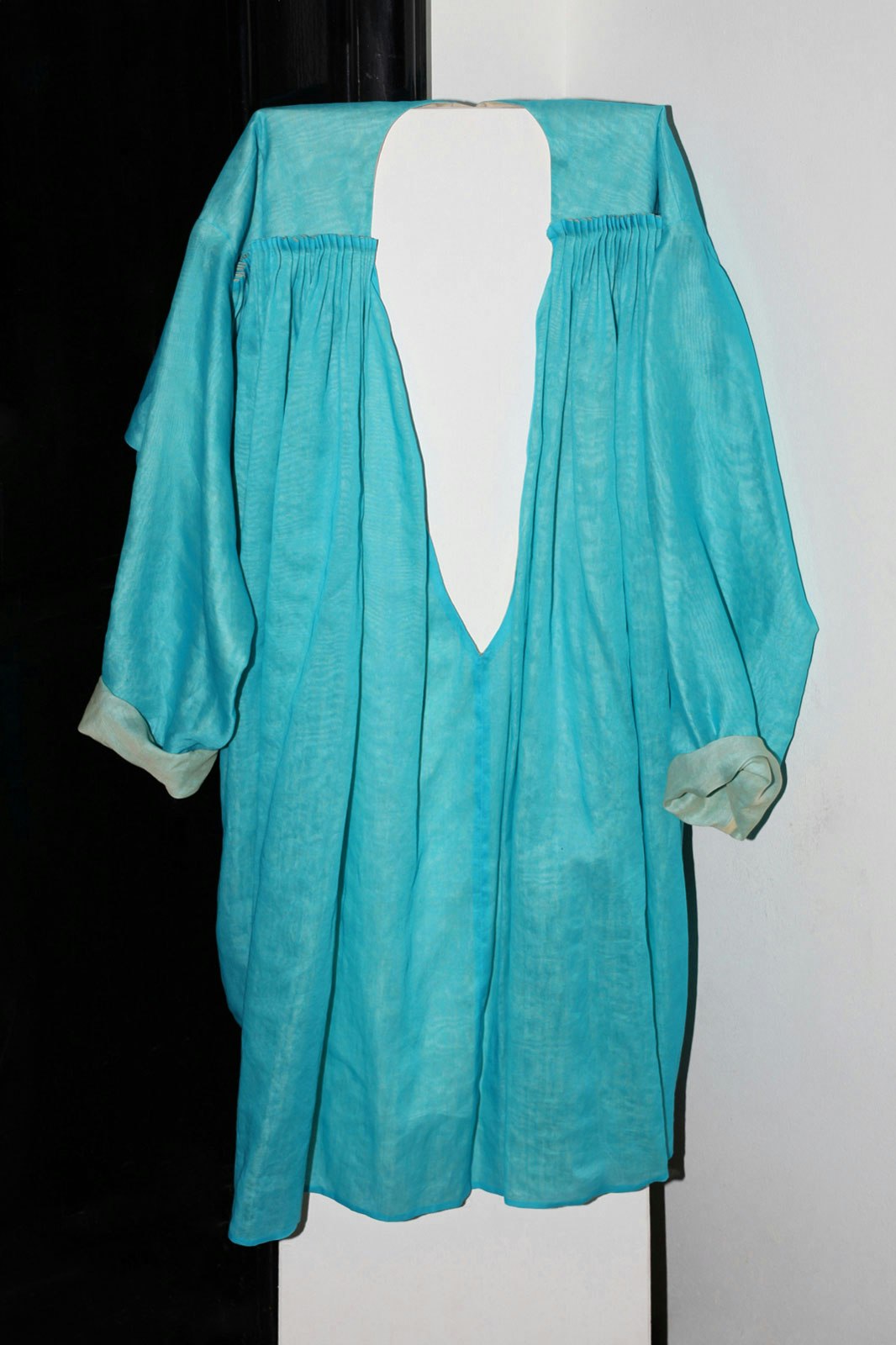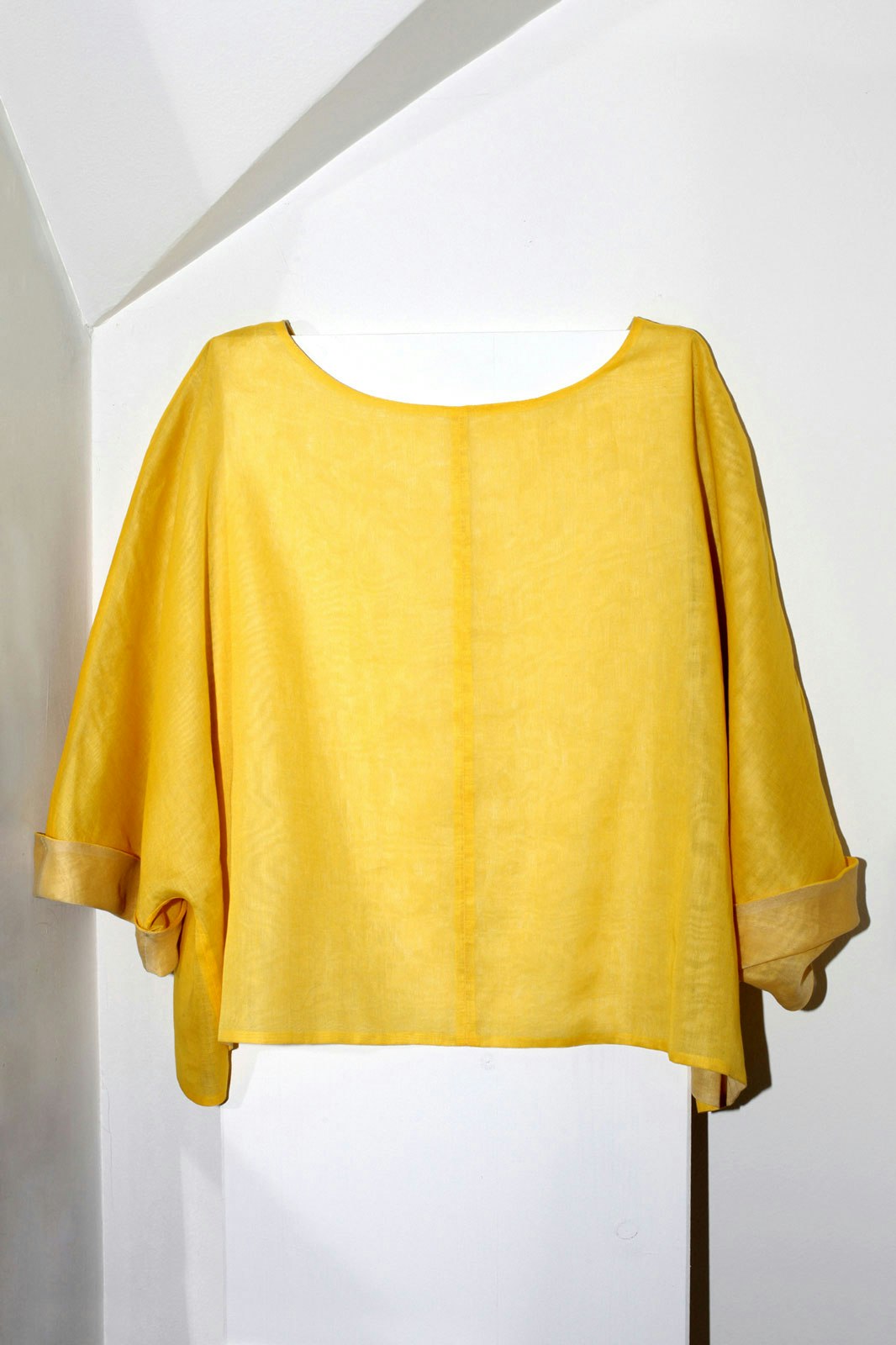 Experimental combinations interest the two designers more than the concept of 'seasons'. The idea is to tempt the wearer to try the so-called layered look. The collection does not contain any lined coats or jackets. By forming layers, the individual pieces from the collection act as lining or as an outer layer, always remaining visible to some degree. The materials are natural. Light cotton is combined with coarser materials, and prints, colourings and embroidery created by the designers are used to transform the light-coloured plain fabrics wherever possible.
