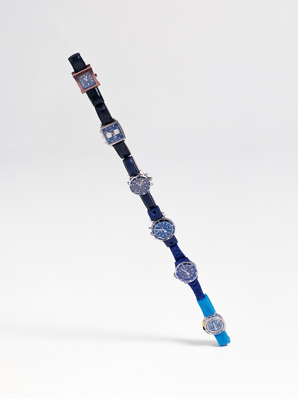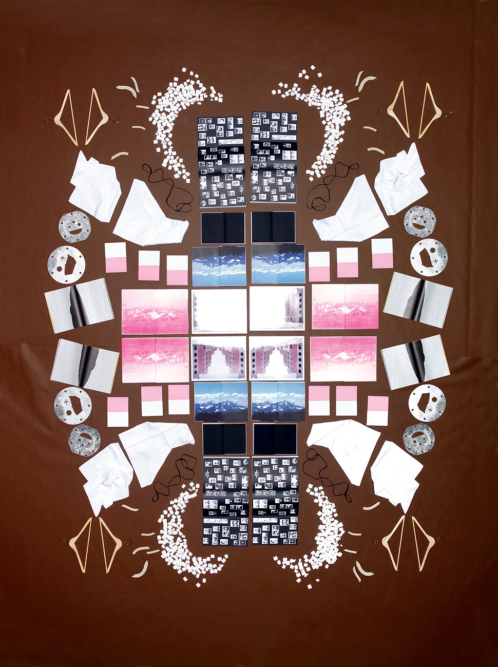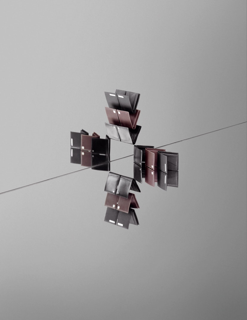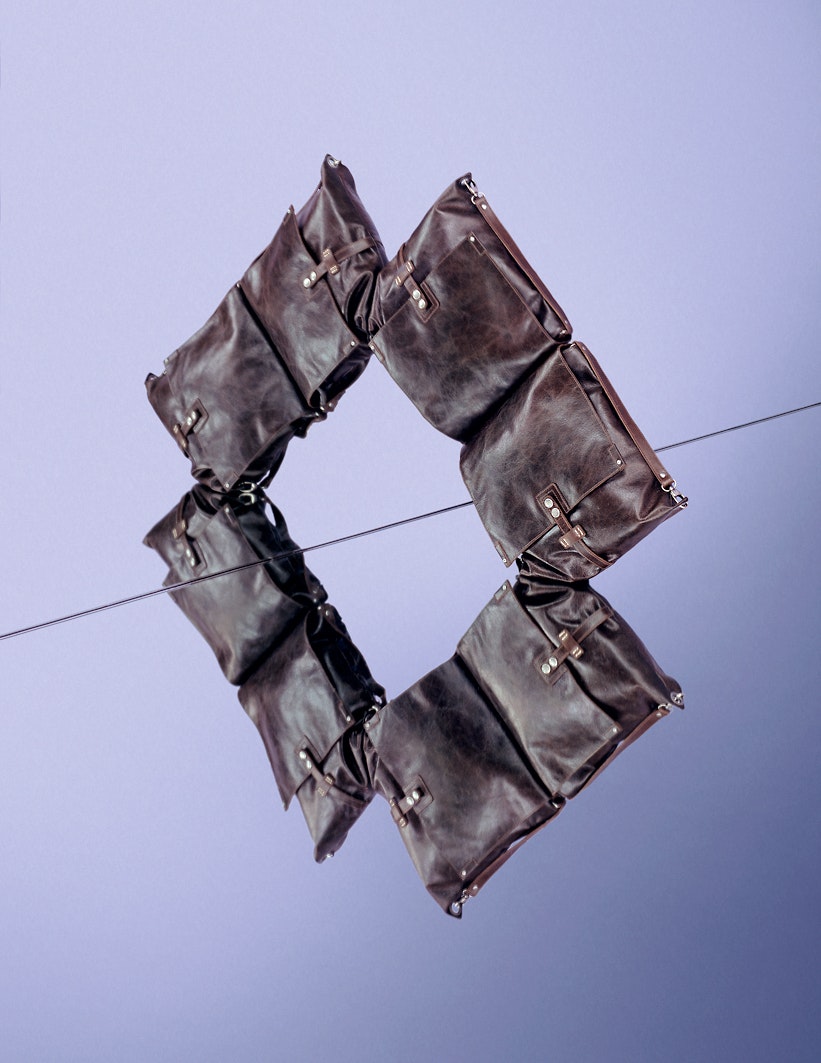 In the work commissioned for the magazine 'Another Man', ties, wallets, shoes and belts are mirrored on an axis, seemingly freed from the forces of gravity, to create a geometric pattern. The mirroring effect is taken still further in the photographs for the Swiss Federal Design Grants 2007 catalogue. Here, the award-winning designs are photographed fourfold from above, from a custom-built scaffolding, and then combined to create a single image. Only on closer inspection does one notice tiny variations in detail, indicating that each individual piece was manually positioned on the ground four times. In the age of Photoshop, such a time-consuming procedure is remarkable.