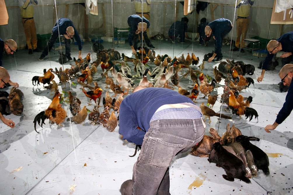 The music video shows various creatures – mice, canaries, chickens – rushing towards a mirrored corner, only to discover that there is no way out. This riotous arrangement of animals to the rhythmic beat of the music creates a fascinating configuration of symmetric movement.
