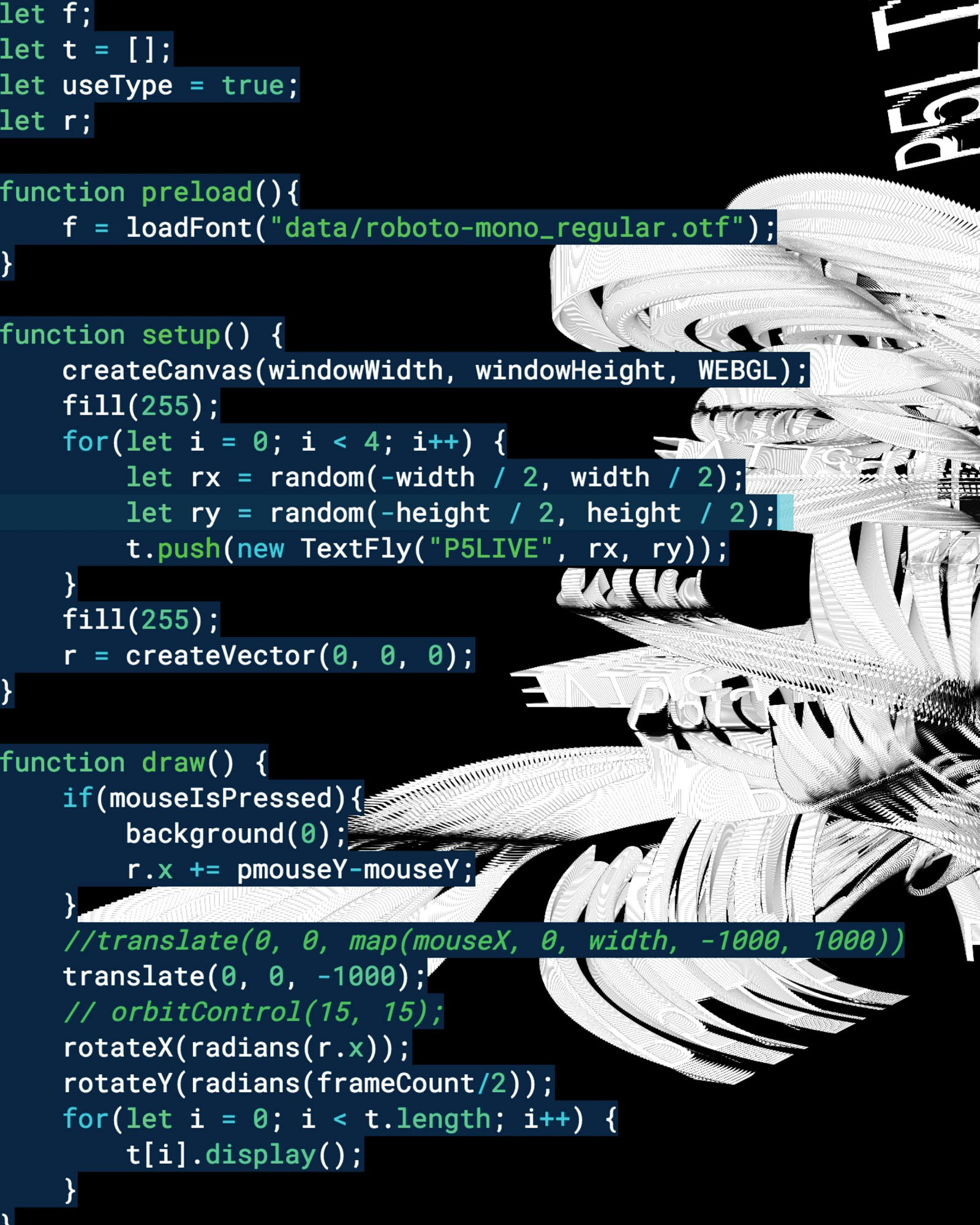 Community, collaboration, sharing and openness are the core principles of the project P5LIVE by Ted Davis. This real-time tool is aimed at coders of all levels and allows them to collaborate remotely – but also side by side – receiving immediate visual feedback on the code just written.