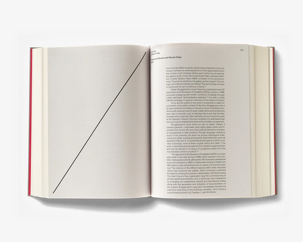 An anthology on the artistic practice of the inaccessible exhibition brings together a large amount of text and visual material from more than five decades. The relatively small format, broad spine and grey hardcover with a large silver X create an object-like, almost hermetic impression, offering an immediate visual signpost to the theme of closing off. The words ‘Anti' and ‘Museum' running in opposite directions on the spine are also both visually attractive and symbolic. Inside, a series of full-colour images are followed by the many texts with a uniform typography. Illustrations, where they occur, are placed at the end of a text in uniform black and white, and each following text is separated by a blank white page crossed by a diagonal black line. The examination of this hitherto largely neglected topic is welcome, and the sober volume is not only highly accessible but also surprisingly light and carefully laid out, making it ideal for reading.