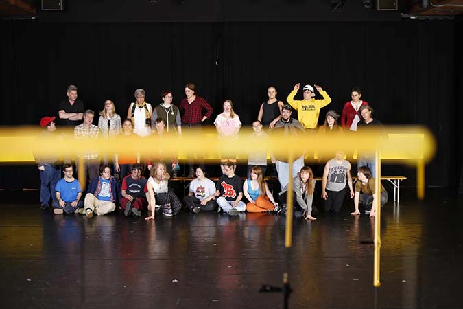 Theater HORA in Zurich is one of the few professional theatres in Switzerland run and staffed by people with disabilities to have achieved fame far beyond the country’s borders. Theatre educator Michael Elber founded Theater HORA after an initial project in 1989. In 2003 it became part of the Stiftung Züriwerk as the first and, to date, only professional culture workshop in Switzerland for artists with learning difficulties. The name is a reference to the first theatre project based on Michael Ende’s novel “Momo”, which features the figure of Master Hora. Since 2009, Theater HORA has also offered an accredited drama training for people with learning difficulties. The second main area of its artistic work lies in the creation of stage productions, both on its own and in collaboration with outside theatre practitioners. Theater HORA has received awards including the ZFV Social and Culture Prize in 1998 and the Paul Schiller Foundation Recognition Award in 2015. The production “Disabled Theater” by the French choreographer Jérôme Bel was performed at the 2013 Berlin Theatertreffen, where Julia Häusermann received the Alfred Kerr Acting Prize and the piece also won a Swiss Dance Award. “Disabled Theater” has gone on to be a huge success, notching up 160 performances at countless major venues and festivals on the global contemporary theatre scene from New York to Macau.