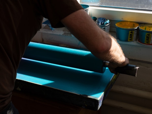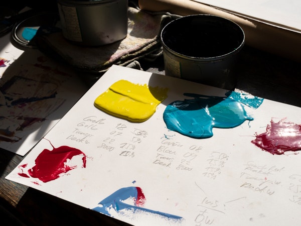 Despite or actually because of his great knowledge of materials and technical know-how, Thomi Wolfensberger welcomes challenges: "I'm gratified if he frowns," says Michael Günzburger, who much appreciates candid, open dialogue. "We question each other as artist or printer, which is extremely productive, a mutual respect that means focusing on content. We influence each other." Two principles underpin his work: listening and taking time. Only by slowing down can you explore something in depth and arrive at surprising solutions. And there is a third principle: Wolfensberger's passion for color. Artists who work with him must have a decided, elaborated attitude toward color, an attitude toward handling color that does not make do with conventional color systems. This principle has also earned him the moniker "Anti-Pantone." It is important to him to question conventional assumptions about color and encourage a new awareness in conversation. So much so, that he has developed specific, personalized color charts with some of the artists. Thanks to his chromatic expertise, Maximage's graphic designers David Keshavjee and Julien Tavelli invited him to conduct a very unusual color workshop at ECAL in Lausanne in 2017.