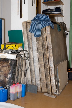 The lithographic print shop, with printing machines named, for example, Emma Stone or Gertrude Stein, represents a slice of Swiss printing history. Since their founding in 1902, the graphic printers J.E. Wolfensberger AG in Zurich have devoted themselves to combining art with state-of-the-art printing. When Thomi Wolfensberger took over the lithography section of the family business in the late 1980s, the heyday of classical lithography had already come to an end. From the start, he found a means of investing the craft with renewed vibrancy through fruitful collaboration with art and artists. He brilliantly exploits and expands the potential of lithography to implement artistic visions. Time and again he has found new means of solving specific problems: technical developments to print oversized work, outdoors, or directly on walls, experiments in the fields of monotype printing and photography, in dealing with color, or the invention of an unprecedented procedure to make the lithograph of an animal. His collaborations with artists are based on subscribing to risk and mutual trust. The development of the lithographic press into a pure artists' print workshop is indebted to long-term and repeated collaborations with such artists as Fischli/Weiss, Samuel Buri, Shirana Shahbazi, Huber/Huber, Zilla Leutenegger, Dominique Lämmli, Michael Günzburger, Dominik Stauch, Adrian Schiess, and such international artists as John Baldessari, Wade Guyton, Wolfgang Laib, and Douglas Gordon.