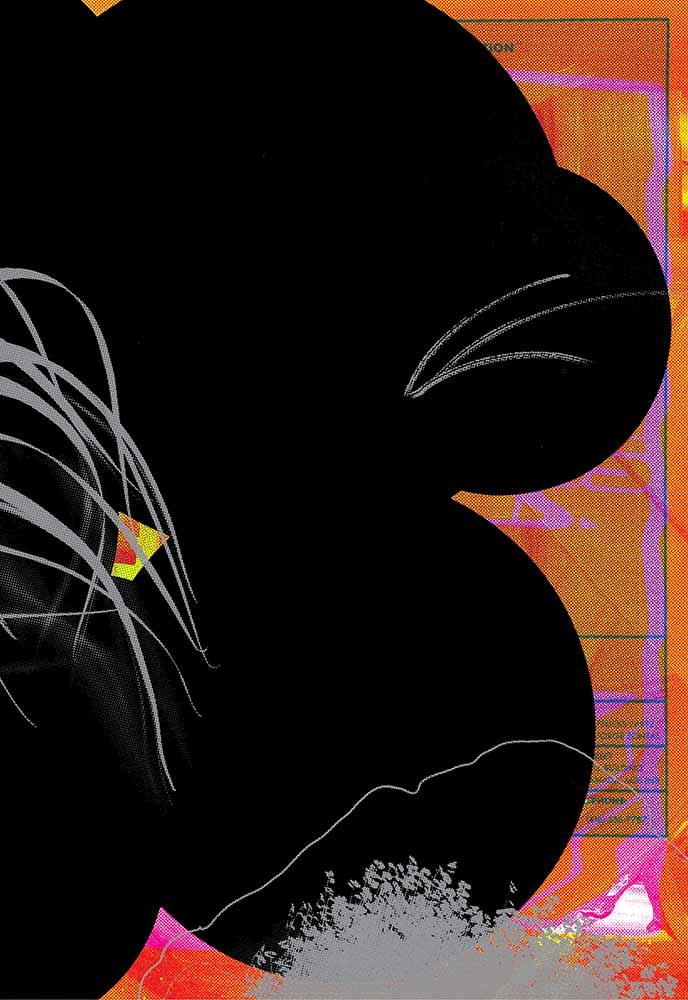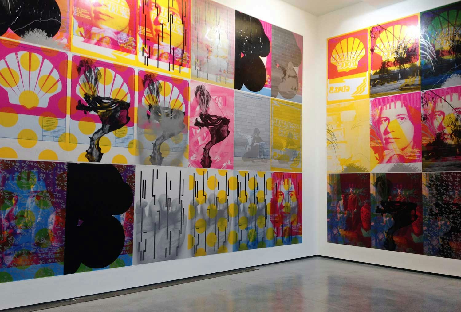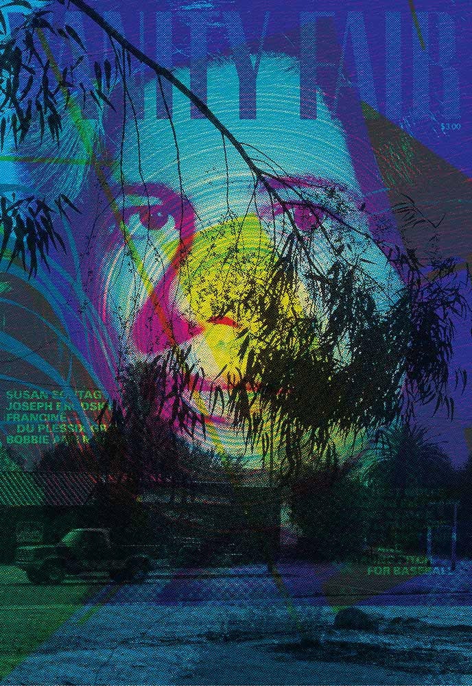 He selected images from the collection archives, combined them and turned them into posters in the French format (1,200 x 1,760 mm). His strategy was based on three precise rules: the only colours to be employed were cyan, pink, yellow, black and silver; the same colour should not be used more than once; and a maximum of five pictures were to be superimposed.
