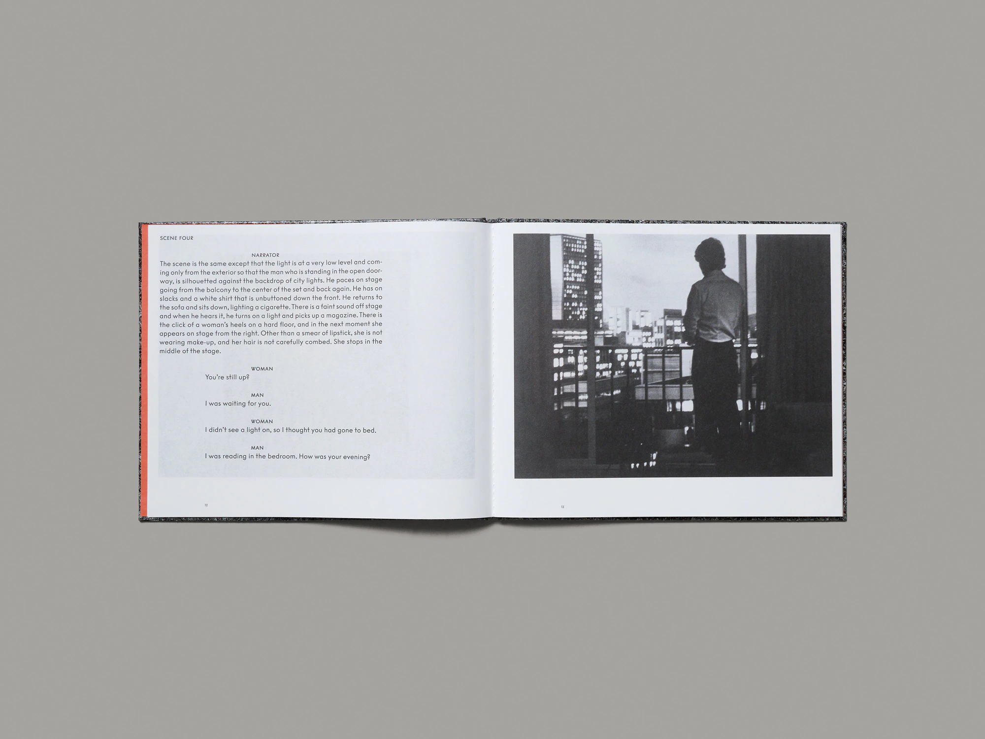 This slim landscape-format art catalogue on William Leavitt makes a startling impression with its cover, which is very hard and unpleasantly rough but chimes perfectly with the conceptual approach of the artworks documented. The unconventional material is reminiscent of some of the artificial building materials that Leavitt uses in his spatial imitations of Californian interiors. Inside, two dozen of these fake interiors are presented in extremely sober fashion – always a single landscape photograph with a regular white border on a page. Some illustrations of theatrical works and videos, which Leavitt on occasion staged in his interiors, are given exactly the same treatment, only here short sections of text are added to the facing page. The cinematographic style of presentation pays homage to Leavitt’s explorations of aesthetics and narrative patterns in Hollywood films. The volume’s cohesive design combines five decades of work to retrospectively create what is seemingly a continuous film script. The slightly translucent paper makes reference to the many installations and threshold situations within the interiors.