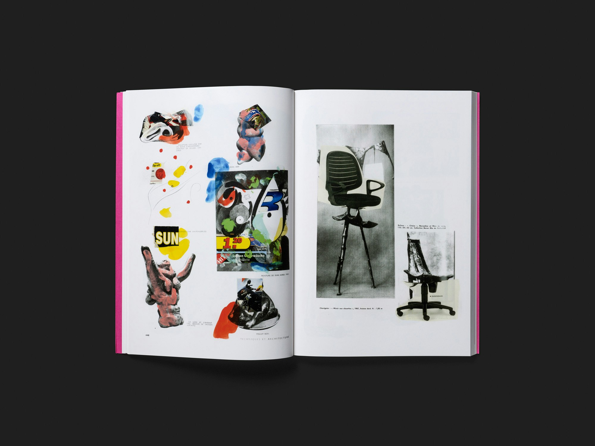 Cet ouvrage malléable à couverture souple sous jaquette rose foncé, qui présente les céramiques pleines d’humour de Bastien Aubry et Dimitri Broquard, est un objet hybride qui joue avec les codes et les typologies du livre. Tandis que le papier et la facture de la couverture évoquent un carnet d’esquisses, le dessin, le nom des auteurs et le titre qui y figurent sont autant d’éléments graphiques associés à la monographie d’artiste. Pourtant, un autre ingrédient traditionnel de celle-ci, la photo d’atelier, n’apparaît qu’une fois, dissimulé sous la jaquette. Au premier abord, la présentation des objets à l’intérieur du livre – seuls ou en petits groupes sur une page – pourrait faire croire qu’il s’agit d’un catalogue chronologique, mais en réalité, l’agencement se fonde sur une composition et une narration iconographiques virtuoses. Les objets, souvent colorés, ont été photographiés sur des fonds de couleur qui semblent par moments faire partie intégrante de la démarche artistique, ce qui témoigne d’une étroite collaboration avec la graphiste. Nombre de ces artéfacts ont l’air de posséder une personnalité propre, une âme, que le travail graphique aurait animée comme par enchantement. Le livre lui-même a quelque chose d’un être vivant et complexe. Un soin admirable est apporté au moindre détail et si l’équilibre fragile entre sérieux et humour qui caractérise la démarche artistique du duo est excellemment mis en valeur, c’est parce que la mise en page, elle, se garde de tout effet comique.