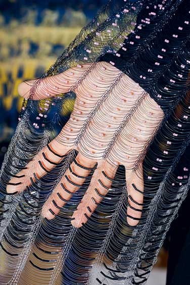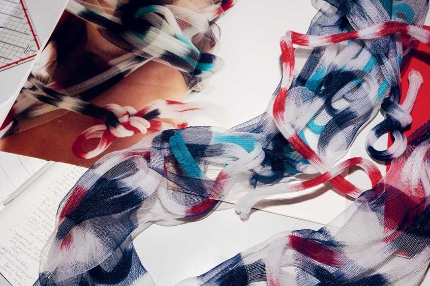 « Avec la maille je travaille de manière plus pure qu'avec le tissage, explique-t-elle. Avec le tissage vient la chaîne, que l'on peut comparer à un papier sur lequel on va dessiner. En général, on ne peut pas faire un dessin dans l'air, à part avec ces nouveaux crayons qui dessinent en 3D. La maille est une abstraction : je dessine sans papier. C'est un risque aussi : si mon fil casse, le dessin disparaît. Si une maille tombe, elle laisse une trace. Mais il faut savoir parfois accepter les beaux accidents, quand on fait de la recherche. Il est certain que si je travaille sur une pièce destinée au défilé d'une maison de couture, l'accident n'a plus sa place. »