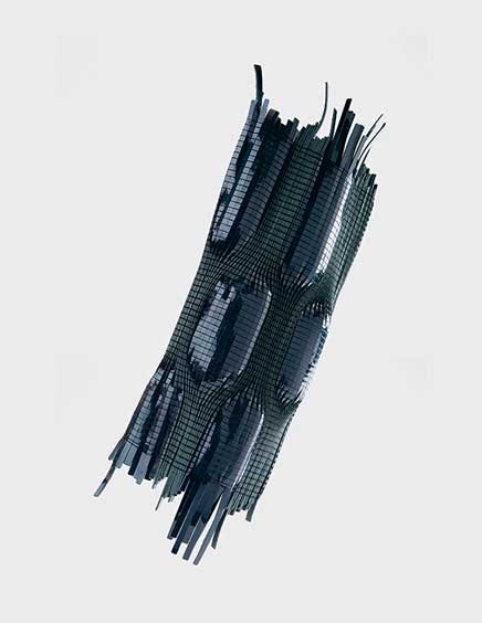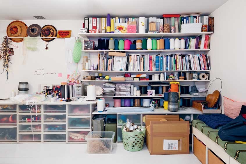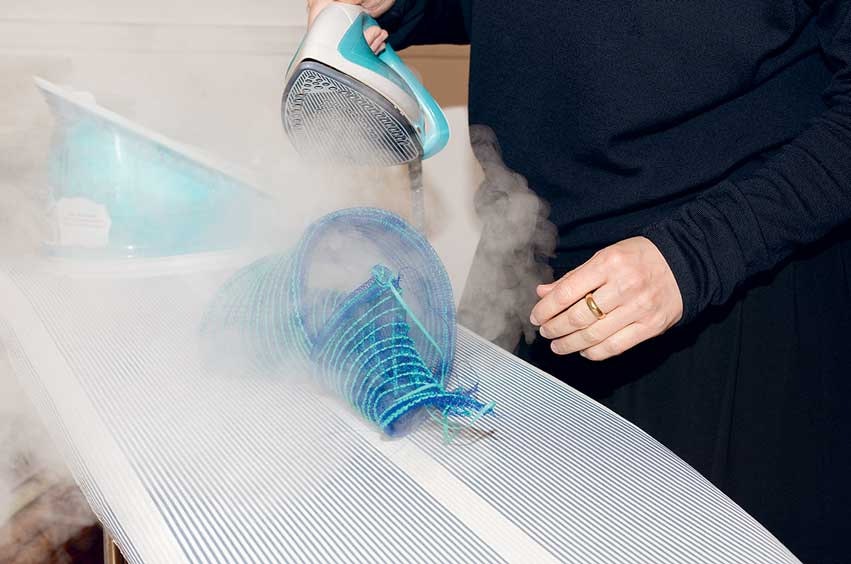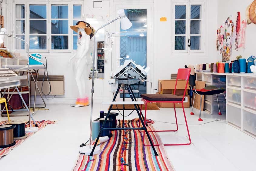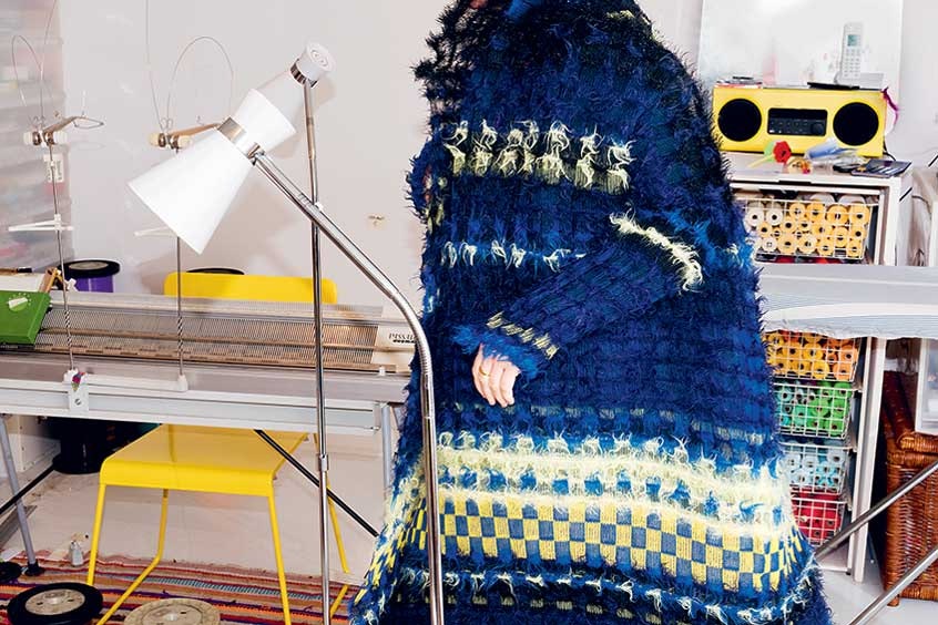 « Je suis Suisse, j'ai grandi à Munich, j'ai fait mes études en design textile à Zürich à la Zürcher Hochschule der Künste, j'ai gagné un prix déterminant à Genève, et je me suis installée à Paris en 2000 », voilà pour les pérégrinations de Cécile Feilchenfeldt. Il s'agit d'un périmètre relativement resserré, mais à l'intérieur duquel elle a créé un univers en expansion. Il y a quelque chose d'assez magique dans cette capacité d'inventer du volume, des formes, des sculptures mouvantes avec un fil et les 380 aiguilles que compte sa machine à tricoter semi-automatique dont elle connaît le chant par cœur.
