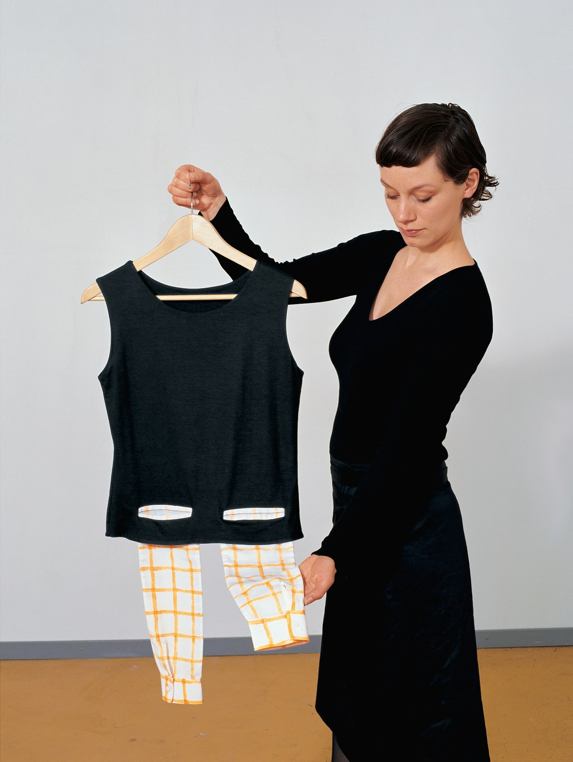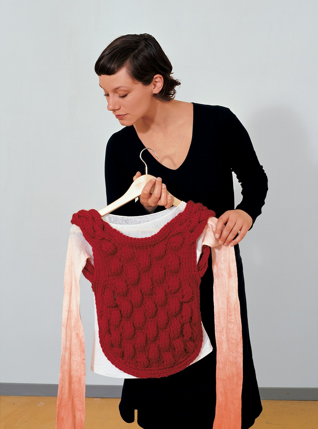 Une collection d'été présentée par Patricia Collenberg et Zuzana Ponicanova joue à fond, sous la devise ‘paysage urbain ou carreau de torchon de cuisine?', sur de nombreuses jupes et hauts avec un motif intéressant: des carreaux peints à la main en noir ou orange fluorescent sur fond blanc en combinaison avec des tissus unis. En outre, une collection de tricots d'hiver invite à un ‘travail de fouilles dans le champ des sensations corporelles'. Elle le fait avec des vêtements ‘multifonctionnels' et ambigus, dont les manches, par exemple, peuvent être transformées par des gestes simples en écharpe, ou le col à rouler en un capuchon. Avec des labels conçus avec un soin visible, les deux stylistes nous guident à travers les manières de porter leurs créations pleines d'esprit et montrent comment des éléments peuvent être changés, comment des revers, des chauffe-dos ou des cols peuvent venir compléter des tenues individuelles et adaptées au climat. Les quatre collections présentées au total ont deux points communs: premièrement, les vêtements restent rarement ce que l'on croit voir au premier abord, et deuxièmement, ils sont tous confectionnés avec le plus grand soin et un sens subtil des matériaux. Beaucoup d'éléments sont variables et invitent à faire preuve de créativité dans la manière de les porter.