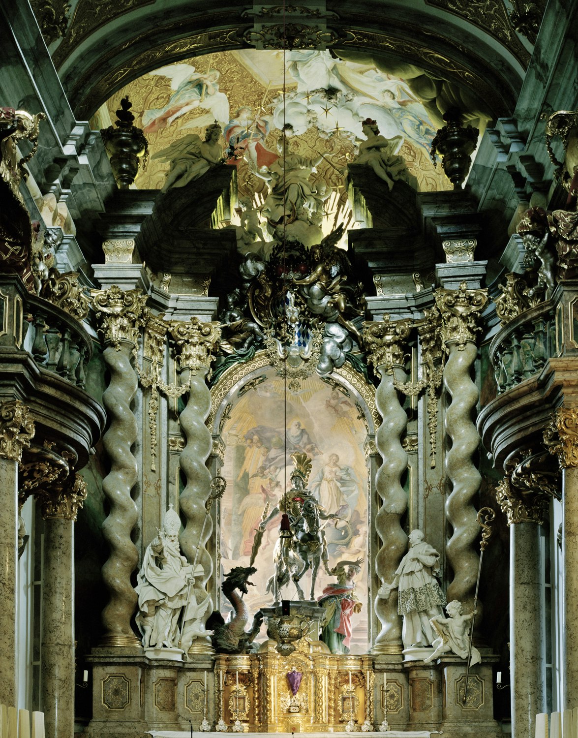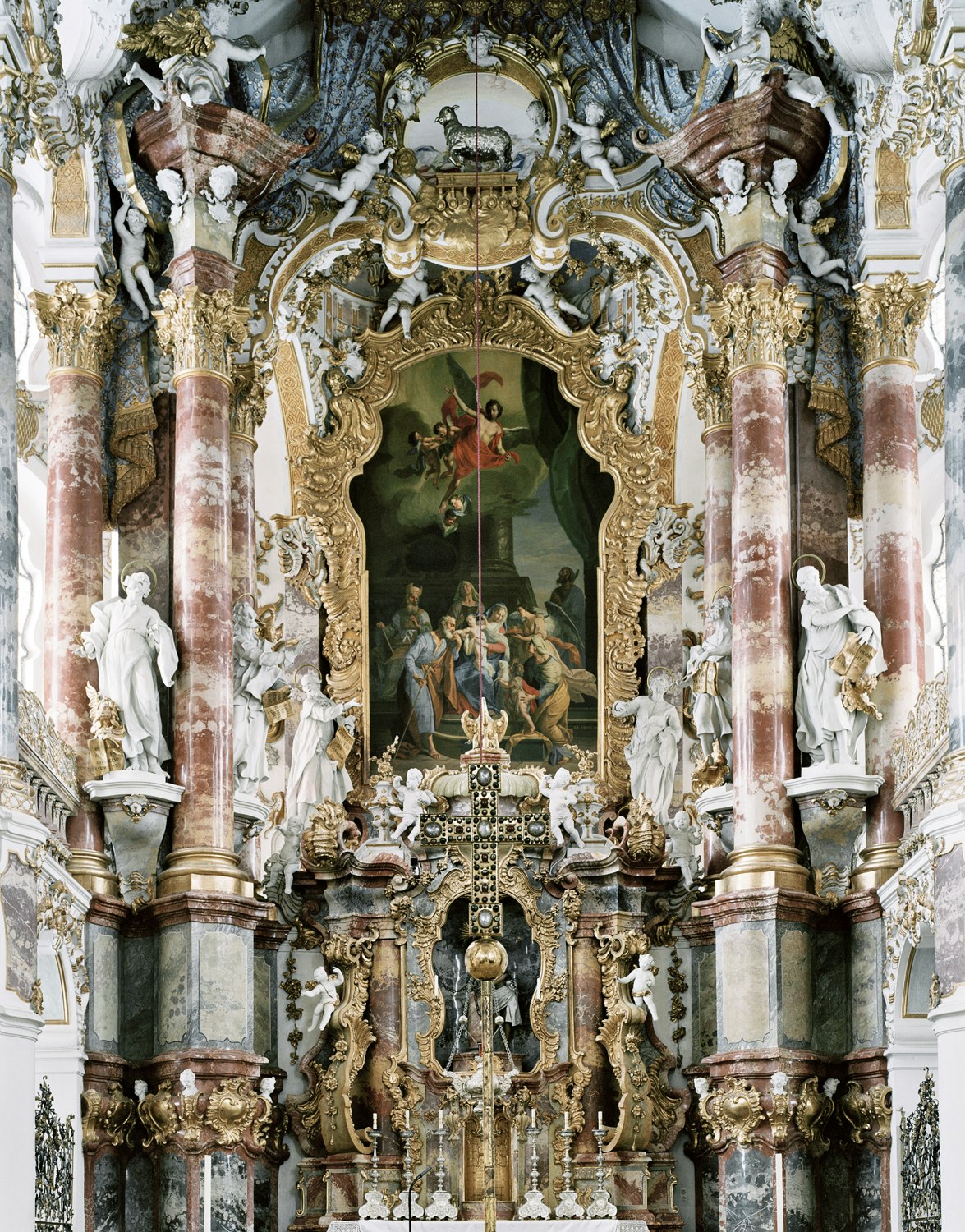 Anges dorés, autels aux parures fastueuses, colonnes tournées aux riches ornements et sculptures puissantes composent une image dense et riche de symboles de l'intérieur d'une église. On est subjugué par ces photographies, par la profusion de ce qui y est reproduit, l'harmonie des couleurs et le grand format surprenant. Le fait que les photographies s'enchaînent les unes après les autres et qu'elles représentent toutes le même motif en le variant, intensifie encore ce moment.