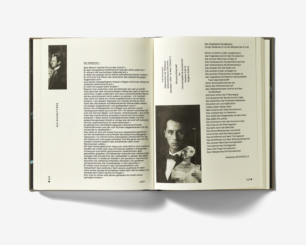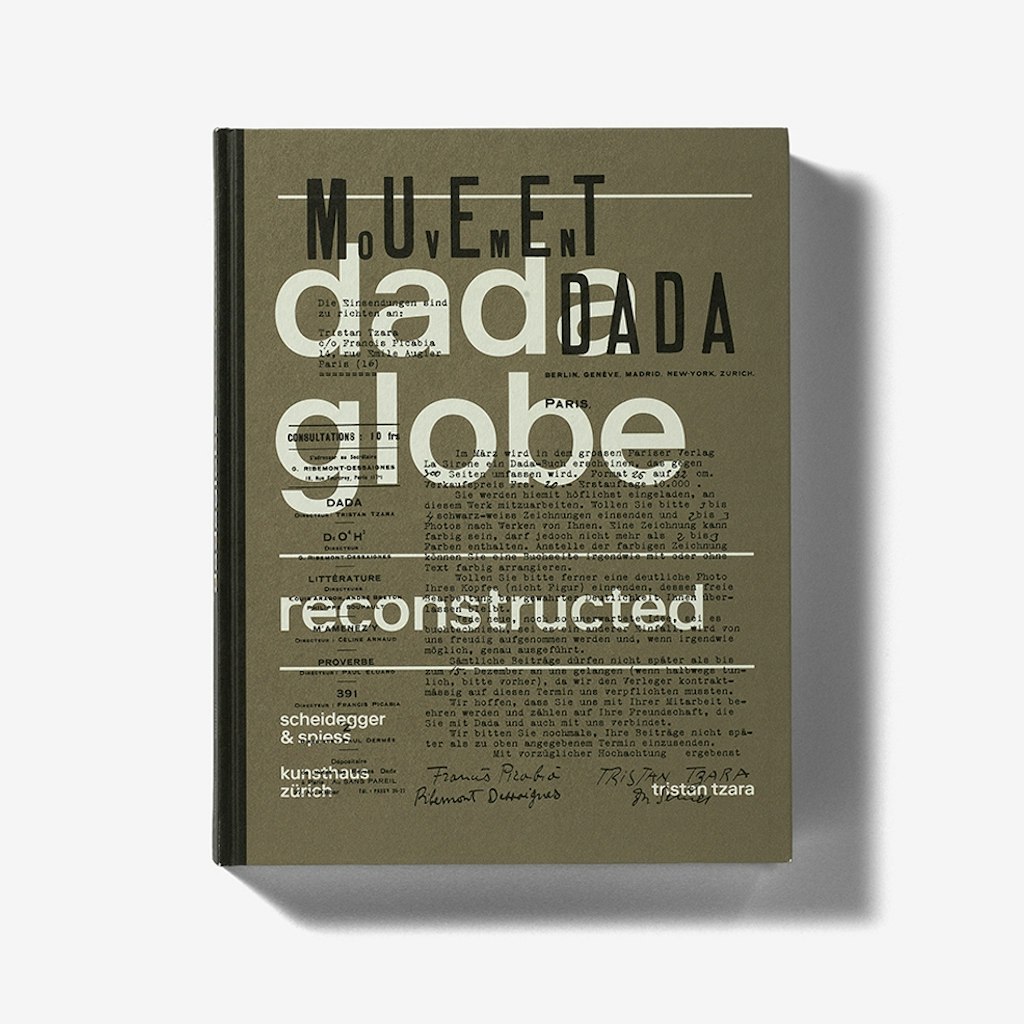 En 1921, Tristan Tzara rassembla de nombreux textes et illustrations d'une bonne trentaine de dadaïstes en une anthologie, le «Dadaglobe». Le projet ne se réalisa pas, mais à presque cent ans de distance, une exposition du Kunsthaus de Zurich et du MoMÀ le fait renaître de ses cendres. La documentation de bric et de broc réunie par Tzara se retrouve aujourd'hui dans un catalogue de taille moyenne à couverture rigide mis en page de manière tout à faire éclairante. La première partie faite de pages étroites contient des essais illustrés d'histoire de l'art ainsi qu'un index qui commente scientifiquement et en détail chacun des documents collectés par Tzara. La deuxième partie qui retrouve un format plus large reproduit sur doubles pages les différentes contributions et le Dadaglobe nous arrive ainsi sous une forme nouvelle. L'ouvrage est conçu de manière très systématique selon une grille et une taille de police uniformes, mais il s'autorise quelques libertés dans le choix des tailles d'images, des crénages ainsi que dans l'usage des interlignes, des majuscules ou des soulignés. Les spécificités des différentes contributions sont bien mises en évidence et la mise en page ludique sert le propos sans jamais donner l'impression de singer la démarche dada.