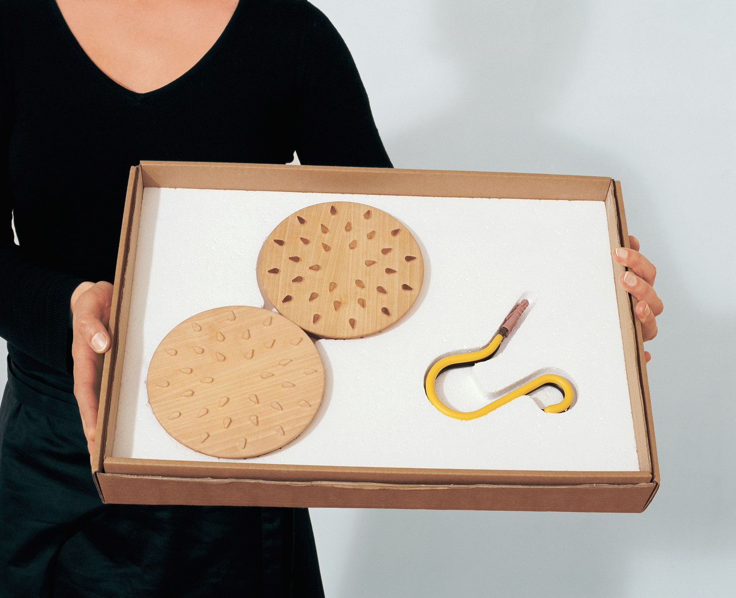 Le travail de diplôme ‘Self-Workshopping' du designer industriel Damien Regamey englobe les objets du quotidien les plus divers. Dans le laps de temps de deux semaines par objet qu'il s'est imposé lui-même (de l'idée à la réalisation des prototypes), il ne s'agissait pas pour le designer d'inventer du nouveau, mais de donner à ces objets - souvent par la fusion de deux d'entre eux - une dimension supplémentaire, plus utile: ainsi, par exemple, un paillasson et un tapis de corridor, un câble et une prise multiple, un portemanteau et les vis nécessaires à sa fixation ne font plus qu'un, et des associations logiques se forment, souvent accompagnées d'un clin d'œil. D'autres éléments, comme les têtes de clou en forme de silhouettes d'animaux ou le motif en relief du dessous-de-plat qui s'assombrit au contact d'un fond de casserole chaud, incitent de façon sobre et simple à une utilisation fréquente dans la vie de tous les jours. Ce travail se distingue par l'approche décontractée et très conceptuelle du créateur. Le court délai fixé pour le développement et la réalisation des prototypes a en partie empêché des solutions bien mûries, mais témoigne d'une grande aptitude artisanale et créative.