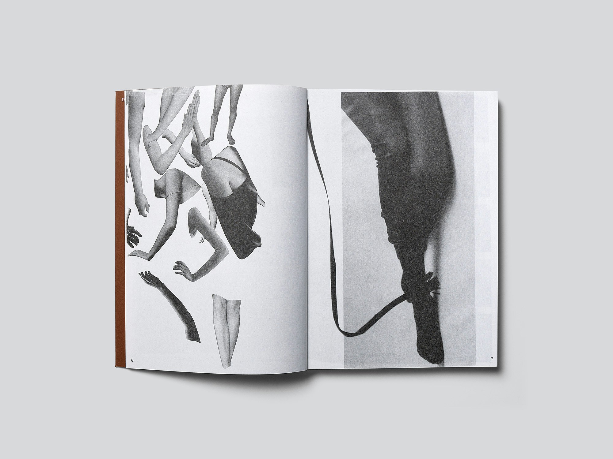 L’artiste Stéphanie Baechler (*1983), qui vient du stylisme et fabrique des objets et des installations mêlant céramique et textile, propose dans cette monographie une réponse définitive à la question de la présentation des œuvres : elle montre exclusivement le processus de son travail. Une partie significative de l’ouvrage est constituée de pages extraites de ses carnets d’esquisses, qui, pour certaines, sont reproduites en facsimilé avec le bord des pages apparent. À cela s’ajoutent des photographies qui rendent compte des différentes étapes de sa production artistique. Leur nombre est variable selon les pages et certaines sont placées légèrement de biais. Dessins et photographies s’articulent bien et forment ensemble un ouvrage cohérent, organique, qui offre un bon aperçu de la manière de travailler de l’artiste. Les trois types de papiers différents et la couverture souple légèrement rugueuse s’accordent également. Malgré des détails voyants tels que les rubans textiles volants ou les dessins et la signature sur les rabats de la couverture, le graphisme ne paraît pas prétentieux. Deux textes de l’artiste et deux textes d’autres auteurs, respectivement imprimés sur les 2e et 3e de couverture ainsi que sur des feuilles volantes glissées dans une pochette à patrons, explicitent le programme et la pratique artistique. Ils se présentent sous forme de lettres adressées à un élément ou une matière, comme « Dear Silhouette » ou « Dear Clay ».