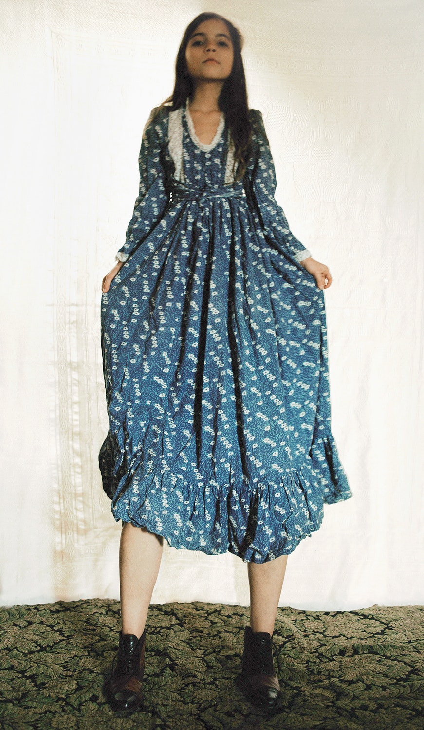 Par leur mise en scène subtile, les photographies d'Elena Rendina entraînent le spectateur dans un monde d'images féerique, onirique et enchanté, qui semble néanmoins relié à la réalité. Professionnellement, Elena Rendina n'est pas seulement photographe, mais aussi styliste. Comme en témoigne son travail, outre la photographie, elle possède de multiples talents dans la préparation, le choix des matériaux, le stylisme et la mise en scène. Elle compose les espaces, les modèles, les vêtements et les poses avec soin pour en faire des tableaux dont la mise en scène est pensée jusqu'au moindre détail. Elle puise dans un fonds de matériaux chargés d'histoire, rares et insolites: de vieux meubles et tapis, de singuliers objets d'exposition ou d'usage courant, des robes qui rappellent les costumes de théâtre. Certaines pièces sont utilisées à contre-emploi et revêtent ainsi de nouvelles significations. Elles contribuent à éveiller des associations sans pour autant les figer. Les matériaux et les objets racontent tout autant d'histoires mystérieuses que les jeunes femmes et les petites filles vêtues de robes à volants. Il s'agit d'un jeu sensuel et féminin, un jeu de gestes étranges et de regards absents.