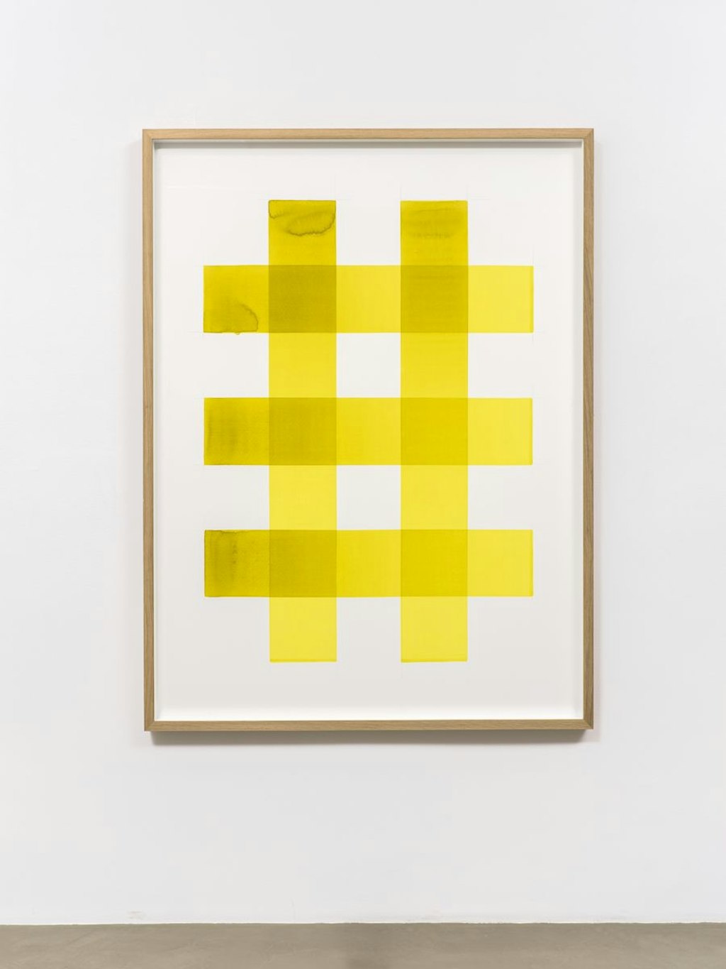 Aujourd’hui, après avoir mis en pause sa pratique installative, l’artiste poursuit cet intérêt iconographique de la grille par des aquarelles où d’épaisses droites translucides s’entrecoupent. Ces oeuvres, répétées sous différents formats et couleurs, inscrivent le geste de l’artiste dans une discipline méditative qui suggère cette fois une émancipation plutôt mentale que physique.