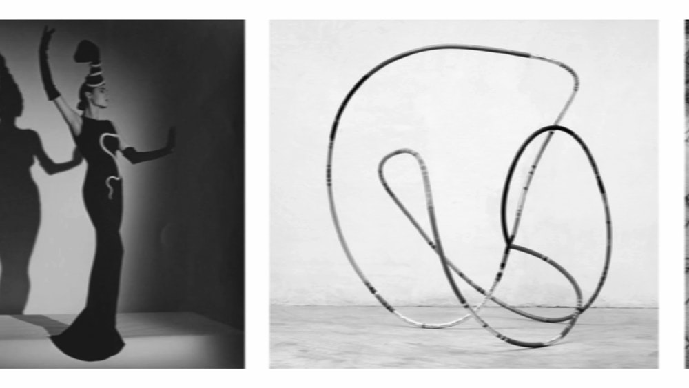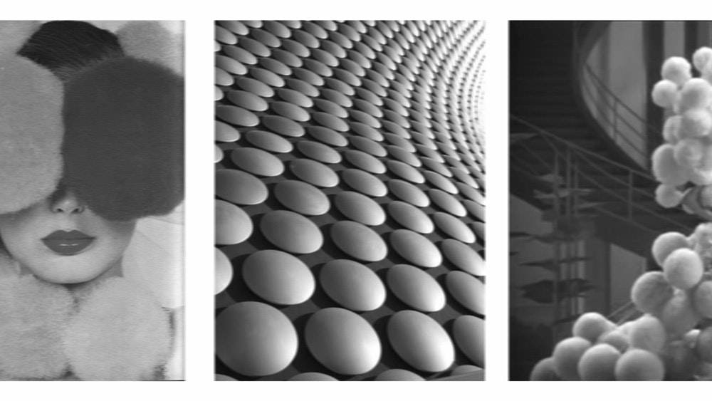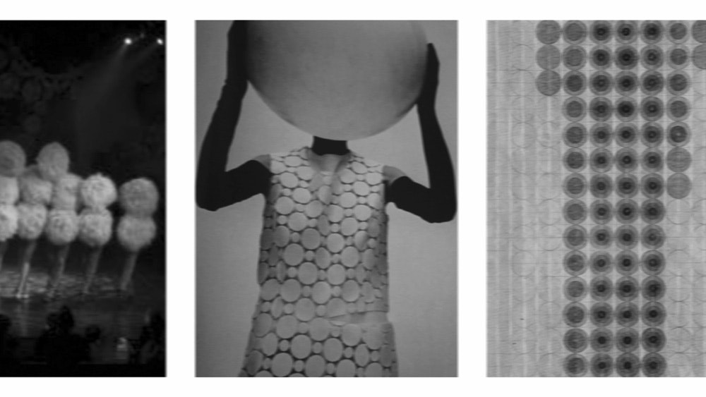 Les modules de base des habits sont déclinés sobrement en noir et blanc, des couleurs primaires soulignant la structure des compositions, des couleurs pastel marquant certains accents. Pour donner une grâce particulière à la silhouette, la designer a introduit du tulle noir qui allège l’effet massif et dense des pompons de laine.