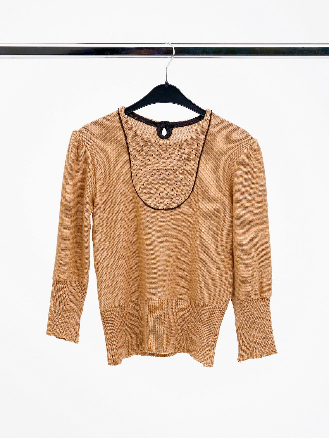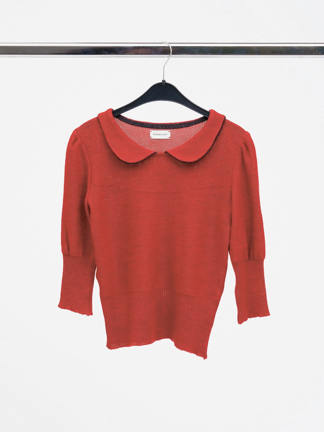 Ils séduisent, les hauts de vêtements, style jeune fille, de Franziska Lüthy – et l'on ne sait pas d'abord comment. Sa collection 'hickory' consiste en dix pullovers tricotés, qui rappellent des habits d'autrefois. On pense les connaître, et pourtant ils comportent quelque chose d'étrange. Cette manière de jouer avec les citations ne lâche pas les spectateurs, elle s'empare vraiment d'eux – le jury n'a pas fait exception. Les cols rappellent des uniformes scolaires, les manches bouffantes évoquent des blouses de costumes folkloriques et des habits paysans, les boutons emmaillotés de laine et les boutonnières tricotées rappellent la garde-robe de grand-maman. La designer de mode explique que l'expression par le tricot est un thème central de son travail. Elle essaye de donner une forme intemporelle et moderne aux images associées au tricot; elle joue avec les éléments démodés ou vieillis, en créant des pièces de vêtements pour des femmes citadines, jeunes et restées jeunes. Elle s'est inspirée de vêtements d'enfant des années quarante, d'images de New York au temps de l'industrialisation, ainsi que d'environnements campagnards et de demeures paysannes en automne. Les hauts de vêtements de Franziska Lüthy sont sobres et riches en détails subtils. Elle souligne par exemple, à l'aide d'une bande de laine sombre, la bordure des cols, le heurt de deux couleurs, les revers des manches ou la partie intérieure de l'encolure. Ce qui accentue la présence des différents éléments. Certains de ces corsages reposent sur la hanche, d'autres ont des tailles hautes, ou sont flottants. Les silhouettes et les coupes sont tendres et féminines. Tous ces vêtements sont en laine de mérinos de la plus grande finesse, dans des coloris automnaux, qui évoquent la forêt, la terre et les baies.