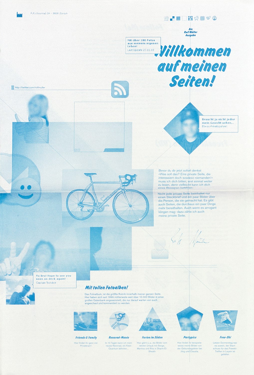 Les thèmes traités, traditionnellement en rapport avec la scène alternative, ont été sciemment remplacés par des contenus contemporains. Aujourd'hui, on lit des titres comme 'Wissen und Bedenken' - savoir et réflexion. L'article parle de la 'génération Wikipedia' et de l'émergence des connaissances approximatives. Sous le titre 'Focused on You and Your Needs', la réflexion s'engage sur la survie dans le monde de l'entreprise, le 'corporate world'. L'édition qui porte le titre 'Selbstveröffentlichung' (autopublication) soulève les questions de sphère privée et de recherche d'identité dans la société des mass media. L'adéquation de la forme et du contenu est remarquable: la mise en pages rappelle les pages de Facebook, quant au contenu, toutes les informations disponibles en ligne sur un certain Monsieur Rolf Müller ont été rassemblées et recomposées pour dessiner le profil fictif d'une personnalité.