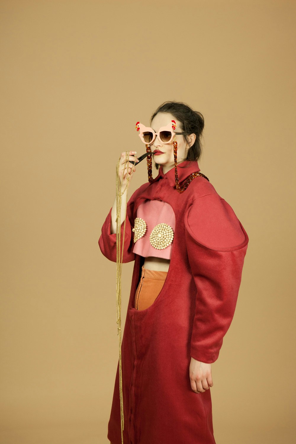 Isabelle Mayer, 1988, vit et travaille à Frick. La styliste construit son propre univers. Mayer fait de nombreuses références à Meret Oppenheim, mais garde toujours son style et sa bienveillance pour s’affirmer avec une œuvre assumée.