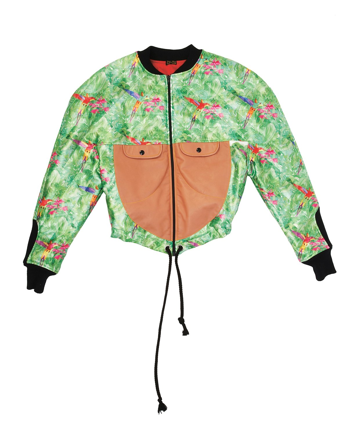 Bariolé, sauvage, coloré, frais, contemporain, sortant de l'ordinaire: autant de mots qui viennent d'emblée à l'esprit quand on est en présence des créations vestimentaires de Joy Ahoulou. Partant de l'image idéale qu'il se fait d'un adolescent au seuil de l'âge adulte, ce designer de mode a imaginé des vêtements pour homme qui font leur part à l'hédonisme et à la joie du corps, mais qui par ailleurs sont marqués au sceau d'une certaine naïveté enfantine. Une situation sur laquelle Joy Ahoulou, cependant, ironise avec tendresse, quand il donne des classiques, par exemple le polo, une version légèrement distanciée; quand il recompose à neuf le blouson bombardier; ou encore lorsque, pour l'ensemble pantalon et veste fabriqué dans un tissu que décorent les imprimés de Monika Stalder, il fait surgir de la jungle des singes et des oiseaux. Les photographies du lookbook manifestent très clairement une dualité, entre la sûreté du métier et la naïveté du désir. Ce qui irradie de ces jeunes hommes, c'est une association singulière de caractéristiques: ils sont à la fois perdus, mal à l'aise, et pleins d'assurance. Ahoulou a réussi, avec sa collection, à capter exactement ces états d'âme, et à les rendre perceptibles dans ses vêtements.
