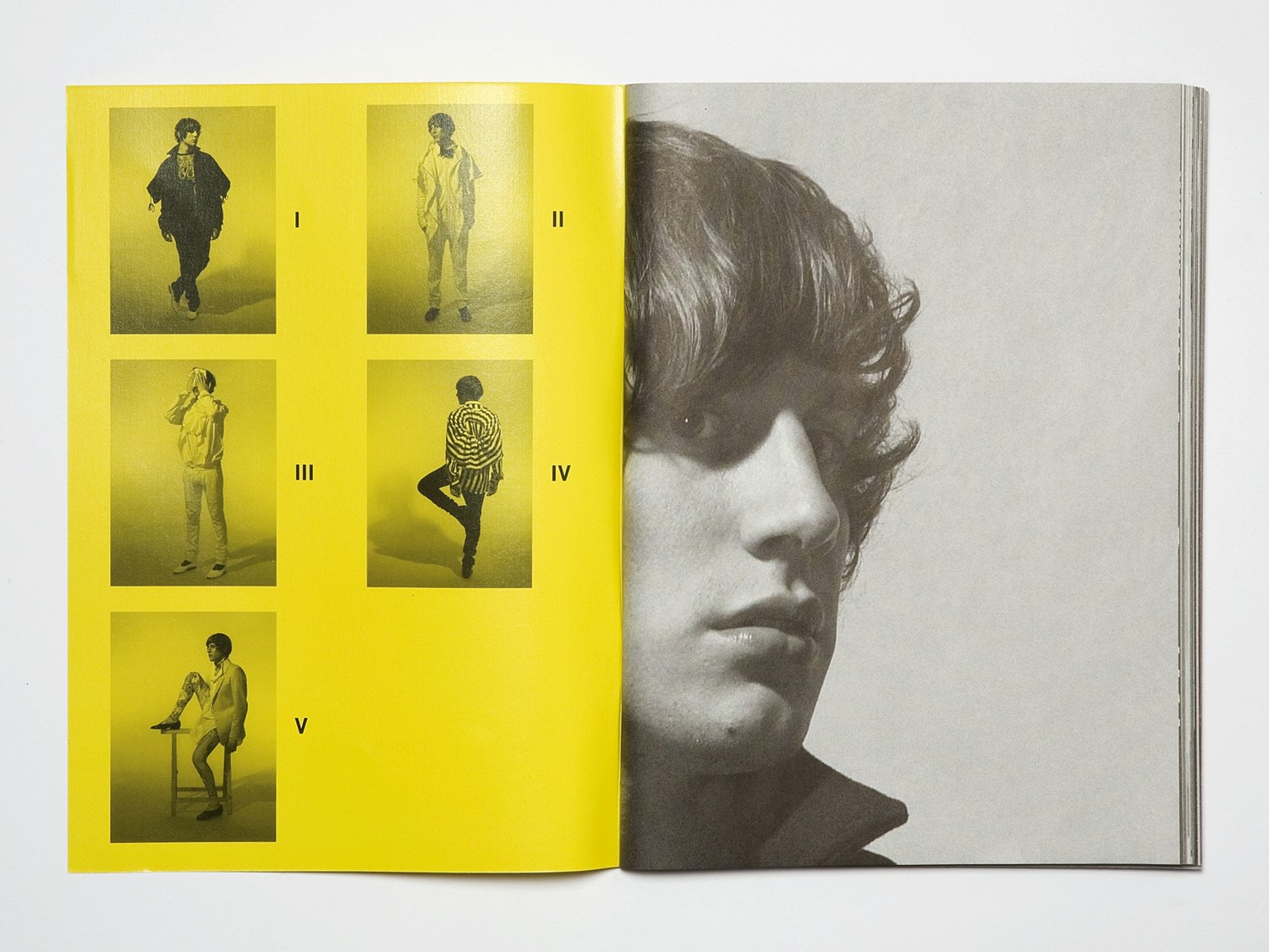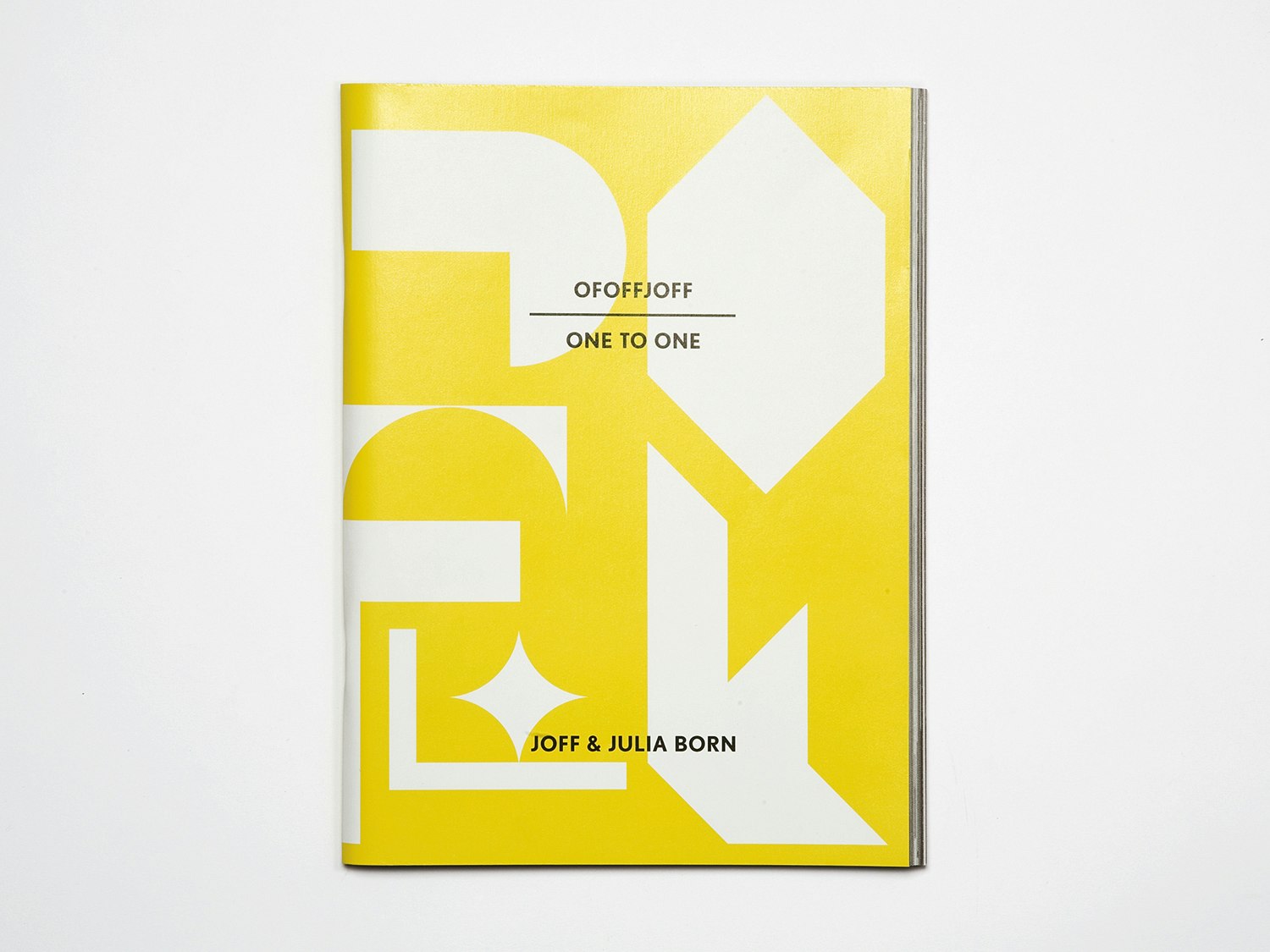 La publication 'Ofoffjoff – One To One', avec le designer de mode hollandais 'JOFF' est par exemple beaucoup plus qu'un lookbook. La graphiste décrit sa collaboration de plusieurs années avec 'JOFF' comme une recherche commune de formes de représentation non conventionnelles pour la mode. La masse et la dimension sont des éléments importants de la collection, et Julia Born les prend également en compte pour la mise en forme du livre. Elle a décidé de montrer les dix tenues en grandeur nature, réparties sur huit à douze affiches. Ainsi chaque personnage est découpé, puis recomposé dans le livre. Sur chaque double page naissent de nouvelles combinaisons et oppositions faites de vêtements, de parties du corps et d'étoffes. Les affiches font également allusion aux coupes des stars dans la revue de jeunes 'Bravo', comme d'ailleurs à la naissance progressive d'une tenue vestimentaire. La publication 'Ofoffjoff – One To One' se comprend comme un prolongement de la collection de mode, et pas seulement comme une documentation sur elle.
