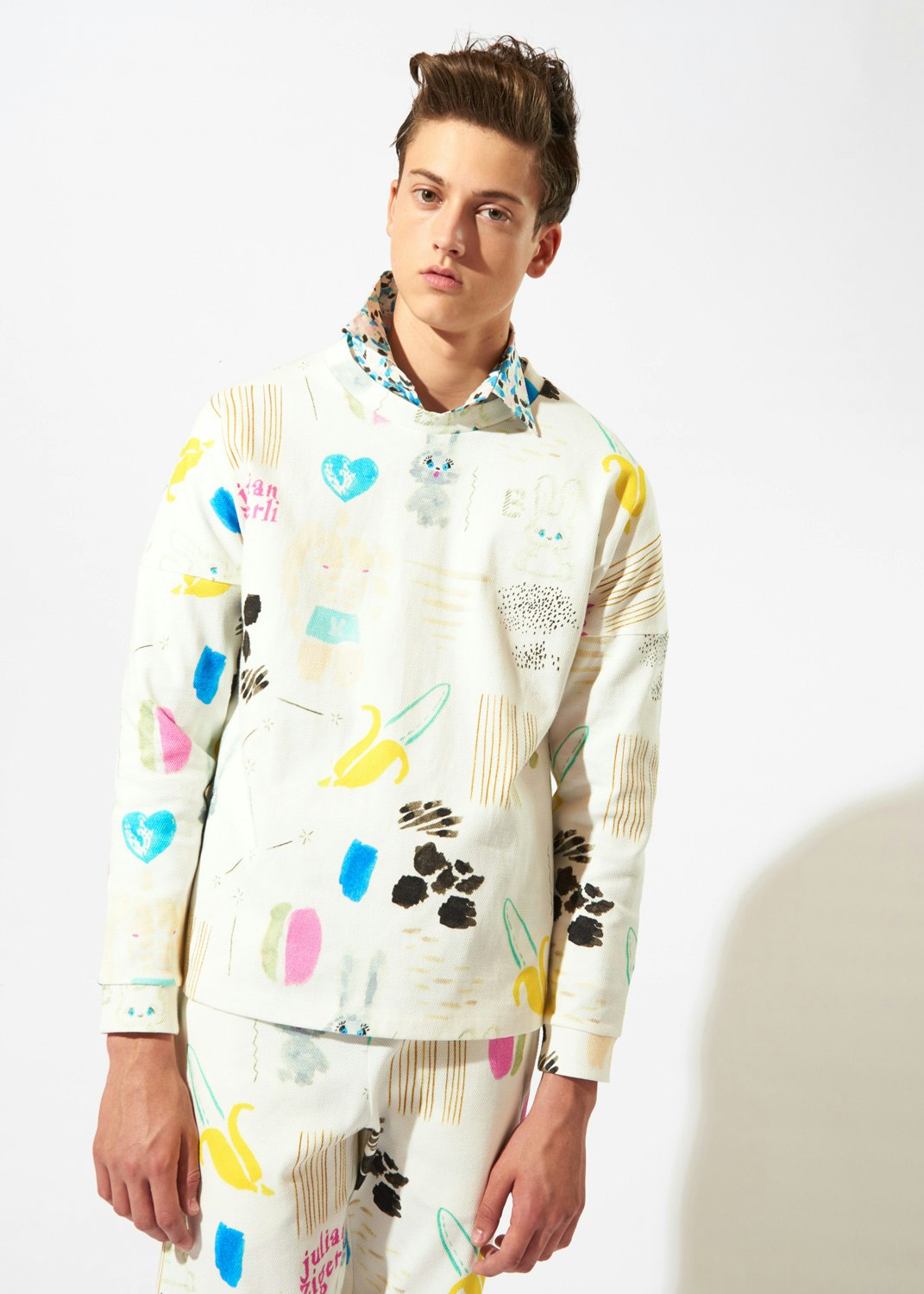 Julian Zigerli continue de traduire des idées ludiques et excentriques en collections portables et cohérentes. Il a développé ces dernières années une position très claire qui s’est transformée en une forte marque sans pour autant perdre l’humour et la légèreté qui caractérisent son approche.