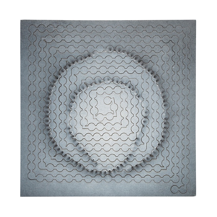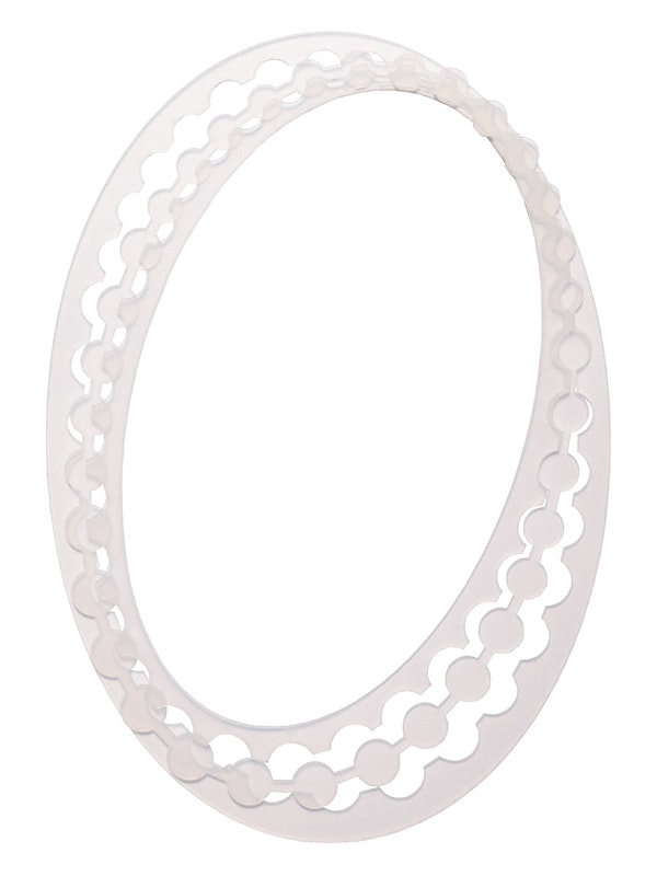 Le collier en silicone est une œuvre dont on s'approche lentement. Le processus d'extraction progressive, la découverte prudente du bijou, tout cela est voulu. Avec patience, on dégage la parure stylisée d'une sorte de feuille de silicone, qui a été fraisée au laser; enfin, on pourra se l'approprier.