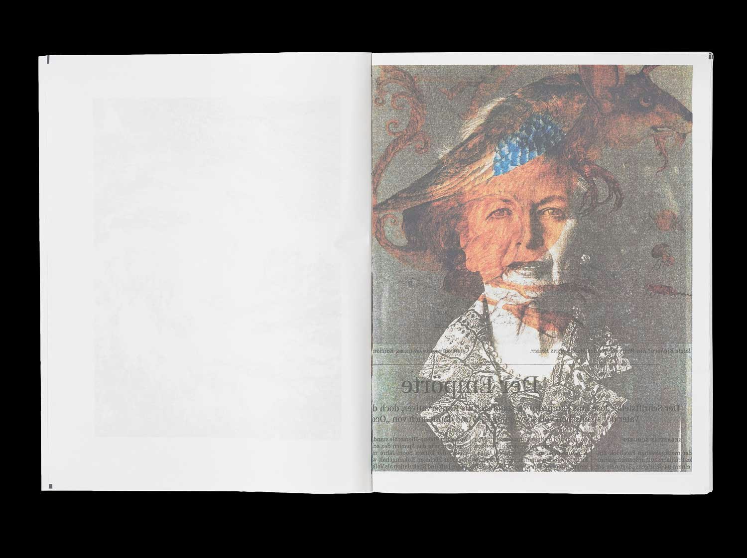 Vu la technique choisie, ces collages hésitent entre abstraction et trivialité, fusionnant clichés de journaux et photos de presse couleurs, créant ainsi un lacis complexe qui exige de l’observateur une concentration intensive.