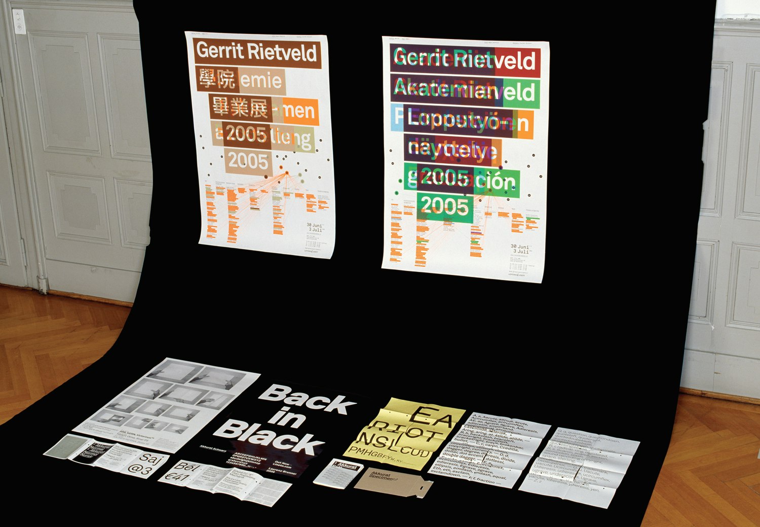 Le designer visuel Laurenz Brunner, formé à l'Académie Rietveld d'Amsterdam et au Central St. Martins College de Londres, a développé une nouvelle écriture. L''Akkurat', sans empattements, se rattache à la tradition des écritures 'Antiqua' suisses; en toute sobriété et en toute solidité, elle rayonne d'un optimisme engageant. Simple et discrète au premier abord, ce n'est qu'à un regard plus attentif qu'elle trahit toute une recherche et dévoile, dans ses détails, des trésors d'optimisation. Laurenz Brunner a conçu l''Akkurat' durant son séjour londonien, de 2002 à 2003. Après de nombreuses études préalables, il a peint les lettres à la main avec de la couleur acrylique, sur des feuilles au format A4, ainsi qu'il le note dans une brochure d'accompagnement. L''Akkurat', commercialisée sous le label 'Lineto.com', et disponible dans 8 modèles, de léger à noir, témoigne de la relation ludique de Laurenz Brunner avec l'héritage moderne, dans le domaine de la création d'écritures. L'ouvrage 'Beauty and the Book – 60 ans des plus beaux livres suisses', publié en 2004 par l'Office fédéral de la culture, employait exclusivement l''Akkurat', plus précisément l''Akkurat mono'; il témoigne à quel point le texte, dans cette nouvelle écriture, se lit avec fluidité. Que cette écriture puisse aussi convenir aux grands formats, l'affiche pour l'exposition 'Frische Schriften' au Museum für Gestaltung de Zurich l'a montré. De même, l'affiche réalisée par Laurenz Brunner pour l'exposition des diplômes de 2005 à l'Académie Rietveld emploie l''Akkurat' dans ses variantes grasses, complétée par divers accents et écritures non-occidentales. Le mélange bariolé de langues et de peuples, à l'école d'art d'Amsterdam, est visualisé de manière simple mais extrêmement efficace grâce à des superpositions de couches d'écritures et de couleurs; du même coup, elle se rattache à la tradition de l'affiche typographique. À chacune des 21 écritures est assignée une couleur; à l'aide de 2 à 21 impressions successives, cela finit par donner plus de 100 variantes de cette affiche. Laurenz Brunner appartient à une jeune génération de designers, hommes et femmes – particulièrement bien représentée cette année avec Sibylle Hagmann et Aurèle Sack – qui donne à la typographie des impulsions nouvelles et pleines de fraîcheur, et qui unit avec succès tradition et renouvellement.