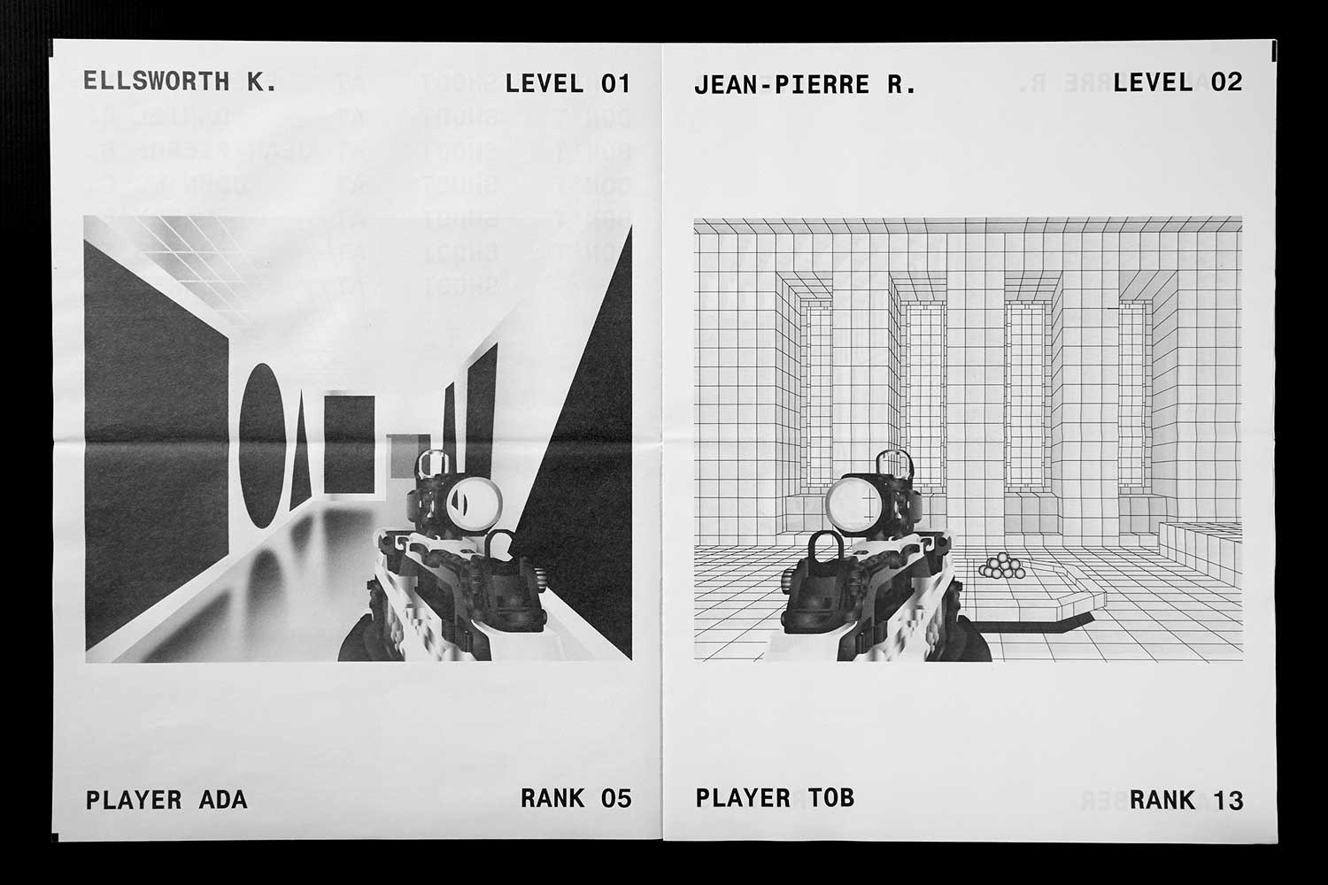 Dans ses travaux, recherches personnelles ou travaux de commandes, Gagliardi raconte des histoires, des anecdotes et des événements, de préférence au moyen d’illustrations et d’éditoriaux. L’illustration numérique est la grande force de la jeune Lausannoise : la tridimensionnalité des objets et des espaces, le jeu avec les dégradés de couleurs, les formes et les contours sont les éléments où la graphiste puise la créativité et l’expression qu’elle met dans la narration de ses histoires. Dans New Stand No. 4 par exemple, une commande pour le Mousse Magazin, où elle raconte le quotidien du New Guy, une fois seul devant un verre de vin, une fois avec des amis à la plage. Dans New Stand No. 3, First Person Shooter, la graphiste traite aussi de l’espace en tant que surface de création, en dépeignant une pièce du point de vue du tireur d’un jeu vidéo.