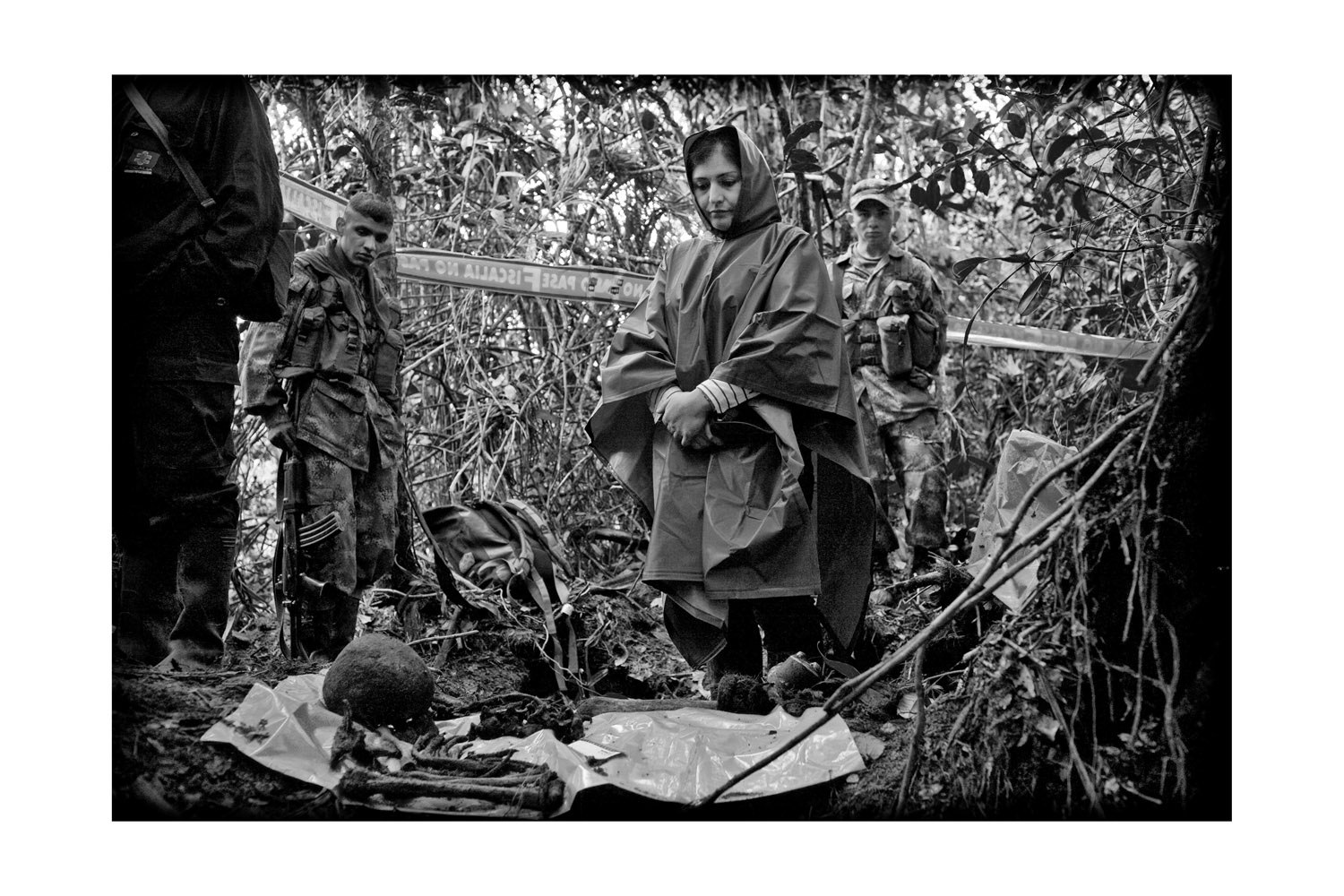 Comment exprimer en images l'impuissance et la douleur des survivants sans pour autant céder au voyeurisme? Luca Zanetti, un photographe qui vit à Bogotá et Zurich, a accompagné durant plusieurs mois les équipes chargées de mettre au jour les charniers de Colombie. Il nous confronte, dans son projet photographique 'The Truth Needs Allies', à des photos bouleversantes. Sur l'une d'entre elles, nous voyons une femme en imperméable, une capuche sur la tête, un sac à fleurs posé dans l'entrelacs des racines. Son regard est dirigé vers la caméra – nous ne voyons pas ce qu'elle voit. Hors contexte, cette photo n'a rien de spectaculaire, n'était la tension qui se lit sur le visage de la femme. La légende nous fournit l'explication: cette femme est la veuve de l'un des assassinés – ce qu'elle regarde, ce sont les fouilles. On estime que 20 000 à 50 000 personnes ont disparu en Colombie, durant les quarante dernières années de guerre civile. Les assassinés ont été victimes des combats acharnés que se livraient la guérilla marxiste, les troupes gouvernementales et les troupes paramilitaires de droite. Plus de 350 cadavres ont été déterrés ces deux dernières années, quelques-uns en présence des membres survivants de la famille. La photo suivante montre une vue d'ensemble des fouilles. On voit maintenant ce que la femme voit: deux hommes en combinaisons protectrices, portant des masques respiratoires et tenant des bêches avec, étalée près d'eux, une bâche de plastique où sont déposés les restes des squelettes déterrés jusque-là. Sur une autre photo, on voit une vieille femme, le sommet de la tête dégarni, caresser un paquet informe, enveloppé de plastique. Il s'agit de la dépouille mortelle de son parent. Luca Zanetti, diplômé de la classe de photographie de la Zürcher Hochschule der Künste (ZHdK), trouve dans ses travaux en noir et blanc le juste milieu entre émotion, empathie et distance. Il nous rend sensible la douleur des parents, mais en toute discrétion. Son approche témoigne du respect qu'il éprouve vis-à-vis des gens dont il fait le portrait et du soin avec lequel il utilise le médium de la photographie. Il a un certain mérite à révéler cette réalité ignorée de l'opinion publique mondiale. Même ceux qui ne connaissent pas l'arrière-plan politique de ces photos, seront touchés par leur intensité et l'appel humanitaire qu'elles véhiculent.