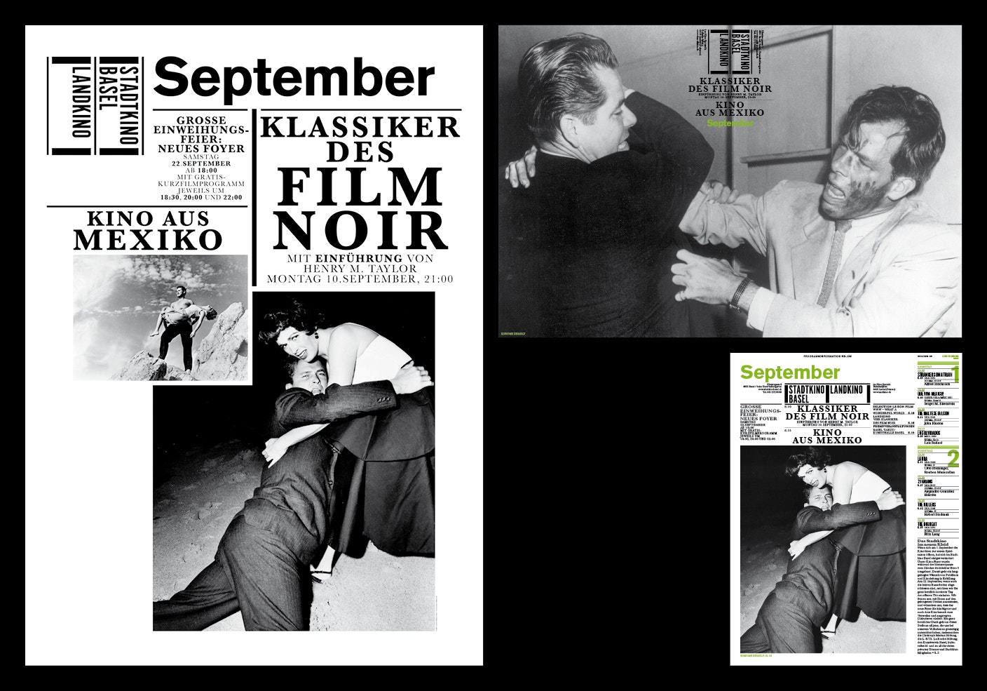 Tous les Bâlois les connaissent, les affiches et les programmes de Ludovic Balland! Depuis 2007, ils ornent les colonnes Morris de la ville de Bâle et sont à la disposition des spectateurs dans les cafés et les cinémas. Mois après mois, une nouvelle affiche, toujours composée selon le même principe, annonce aux intéressés deux nouveaux cycles thématiques organisés par le cinéma municipal: certains éléments, comme les plans fixes en noir et blanc, les gros titres à la manière des années 1950 et une conception saisissante de la typographie lui confèrent son unité esthétique et invitent à une plongée dans le monde du cinéma. Les programmes sont composés dans le même style. Et à ce propos, mentionnons l'éphéméride qu'on glisse dans son sac, si pratique et unique dans son genre. Combinant deux médias qui ont fait leurs preuves, Ludovic Balland fait de la publicité pour les classiques du cinéma, de François Truffaut à Jim Jarmusch en passant par Lucchino Visconti, par des réalisations de haute qualité et son esthétique très particulière.