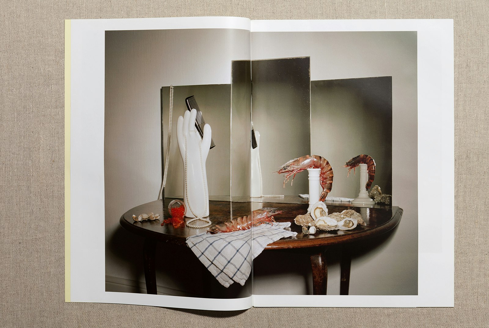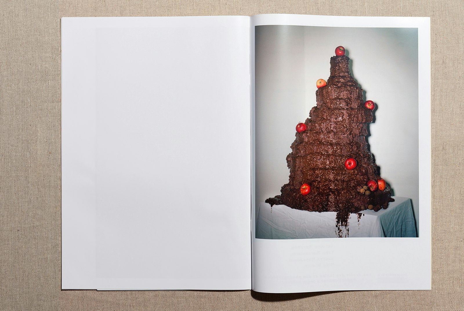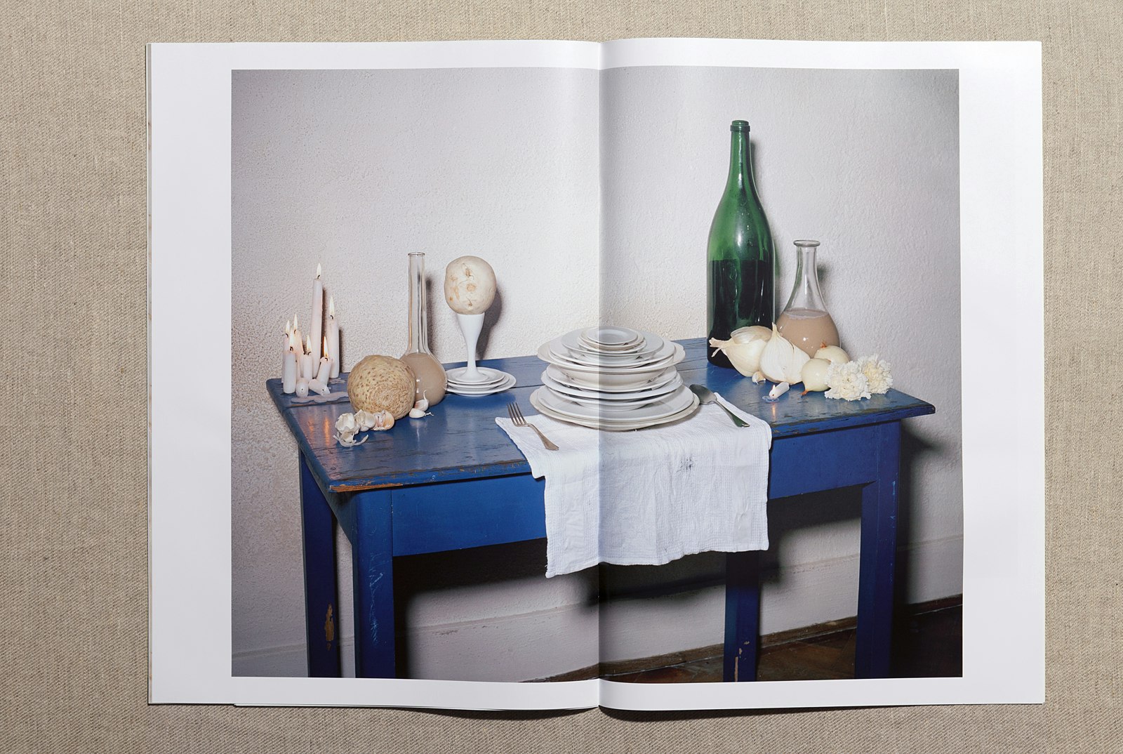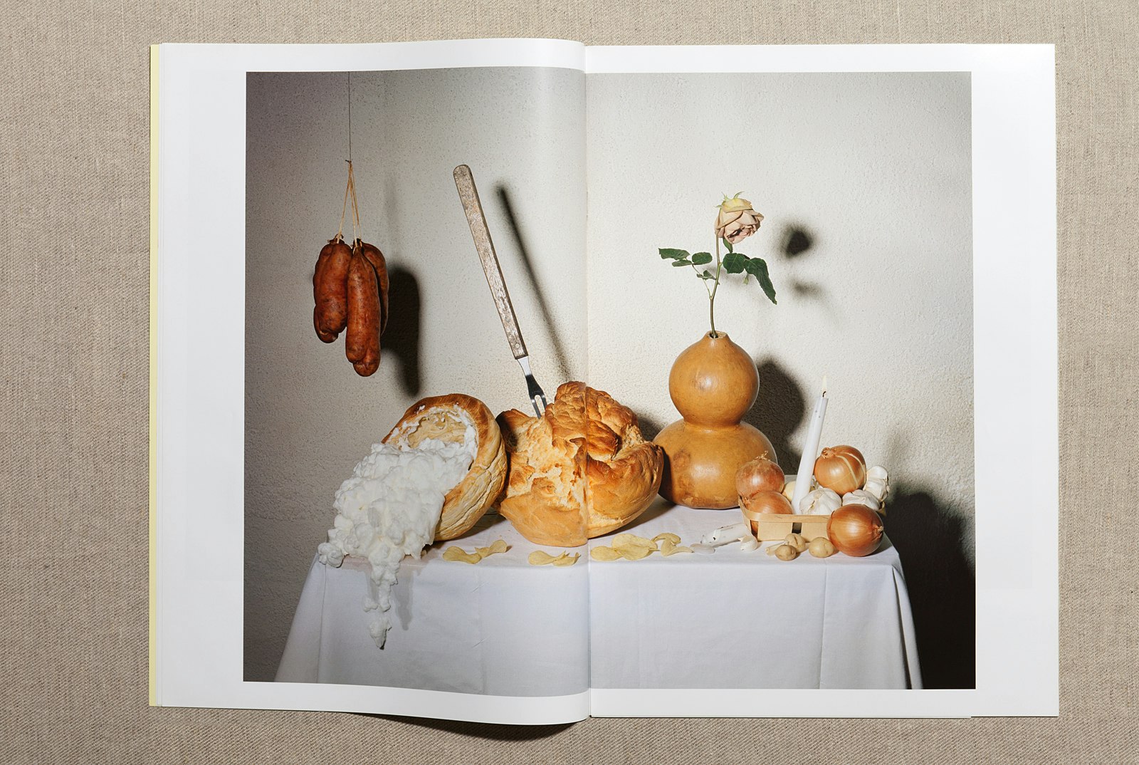 Comment une nature morte se présente-t-elle aujourd'hui? Les photographes lausannois Matthieu Lavanchy et Jonas Marguet ont revisité un genre bien connu. On leur avait demandé de réaliser un cycle de photographies en s'inspirant de la pièce de théâtre 'Obèse'. Ils trouvaient le thème de l'obésité plutôt délicat, voulaient à tout prix éviter la moquerie et ont donc décidé de le mettre en scène sous forme de nature morte. Les deux photographes, qui ont terminé leurs études à l'ECAL en 2008, ont imaginé une personne fictive dont ils font le portrait à travers des arrangements d'aliments et autres objets ménagers, réalisant ainsi neuf photos de composition tout à fait remarquables. La première, 'Neuf veltes remplissent un quartaut', montre une table recouverte d'une nappe blanche et garnie de grosses miches de pain ainsi que d'un vase-calebasse portant une rose. Dans le coin supérieur de la photo, on voit d'épais saucissons fumés suspendus à un fil, et sur la table encore, des oignons, de l'ail, ainsi qu'une bougie allumée. Une nature morte classique, alors? Au premier regard seulement. Car certains éléments dérangent: une fourchette à grill surdimensionnée est plantée dans l'une des miches de pain, tandis que la deuxième déborde d'une masse blanchâtre mousseuse rappelant la graisse. Dans d'autres photos, les mets se trouvent dans des endroits inhabituels: des langoustes, des coquillages et du caviar sur une coiffeuse – le contraste est déconcertant. Et pour finir, une image montrant des tuyaux, des entonnoirs et un récipient de verre en forme de courge d'où s'écoule une masse jaunâtre. Une allusion au processus de digestion? La démarche de Lavanchy et Marguet renouvelle les natures mortes des maîtres hollandais: si, dans les tableaux des maîtres anciens, l'on voyait surtout une profusion de mets raffinés, ici les entassements de nourriture ou les liquides ne sont plus immédiatement reconnaissables comme aliments. Renouvelant le genre par leur démarche, Matthieu Lavanchy et Jonas Marguet présentent une mise en scène talentueuse de choses peu appétissantes et provoquent l'irritation par leurs effets de distanciation.