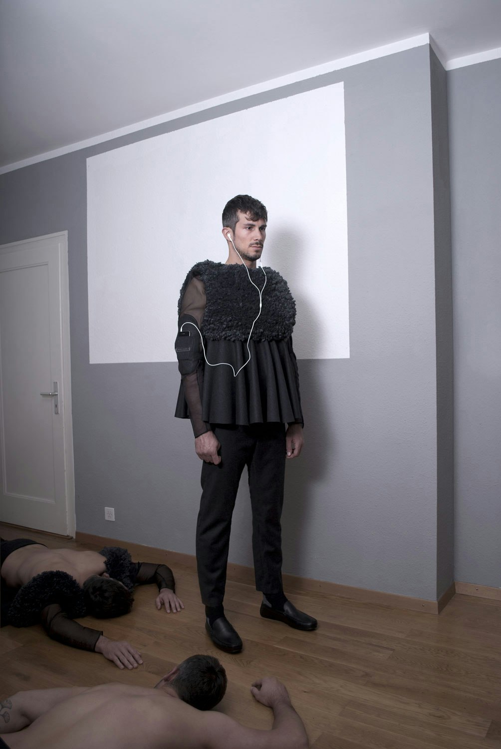 Mikael Vilchez, 1990, vit et travaille à Aire-la-Ville. Vilchez parvient à réaliser la synthèse entre les attributs vestimentaires typiquement masculins et typiquement féminins. A partir d'une jupe de sa grand-mère, il commence à nouer sa collection comme des tapis.Ces lourds objets très expressifs tiennent à la fois de l'armure, de l'installation et du vêtement. Le jury loue l'innovation et la force de cette collection.